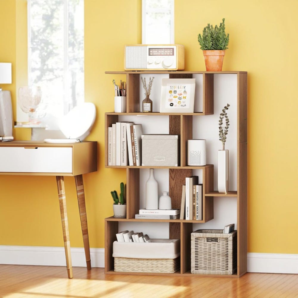 Add contemporary charm and functional storage to your home with this S-shaped 6-cube bookshelf. Crafted with clean lines and a unique open-back design, this 47-inch tall bookcase offers a fresh twist on traditional storage shelves—perfect for displaying books, plants, décor, and more.