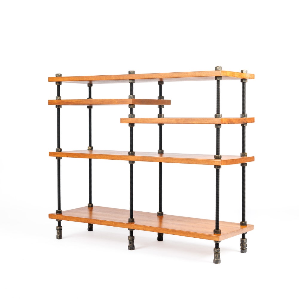 – 30 kg – 4 tier rack standard dimensions 58*40 cm from industrial pipe/threaded rods/solid beech wood panels;