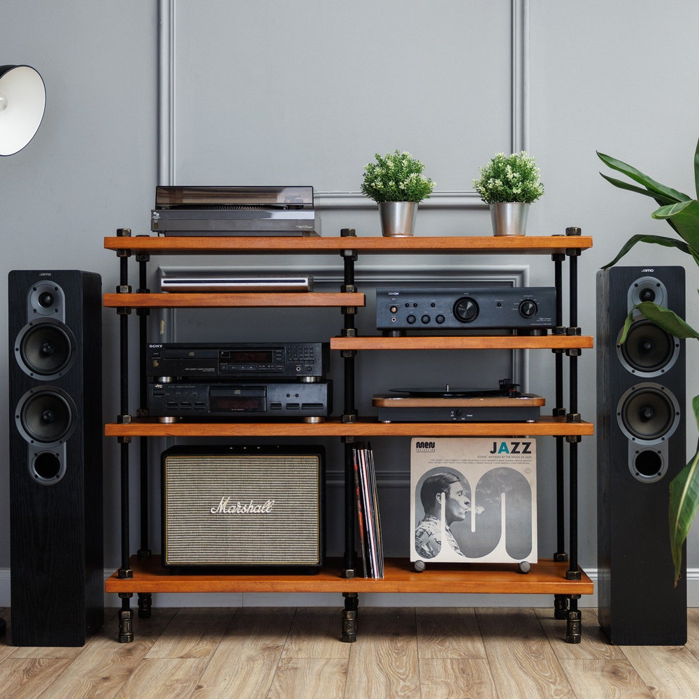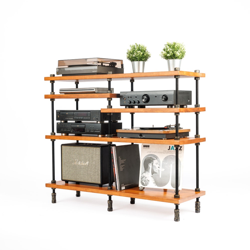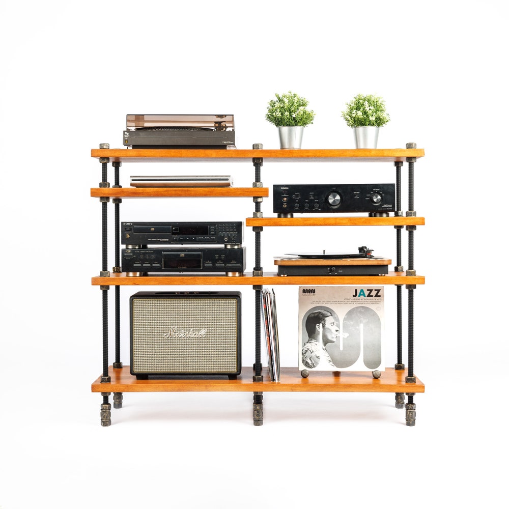 6 in 1 audio rack, Threaded Rods Double stand, LP Turntable Storage, Record Player Stand, Industrial Vinyl Table