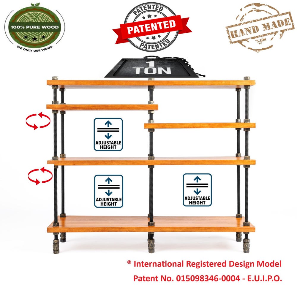 2 IN 1 Registered design stand, 5 Tier Oak Black rods stand, audio rack / Record player stand / Turntable stand / Threaded rod shelf