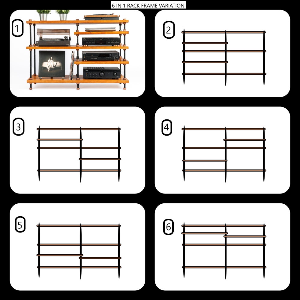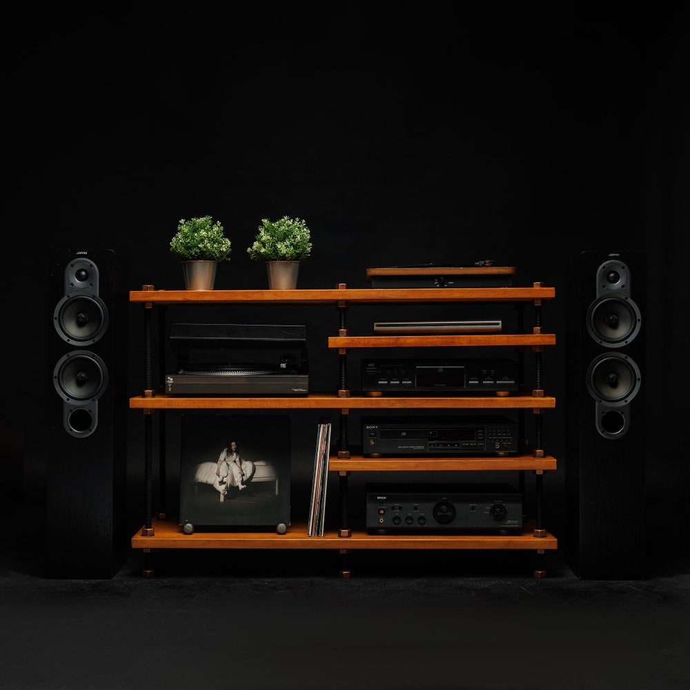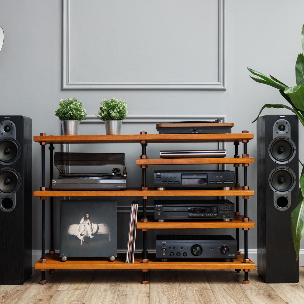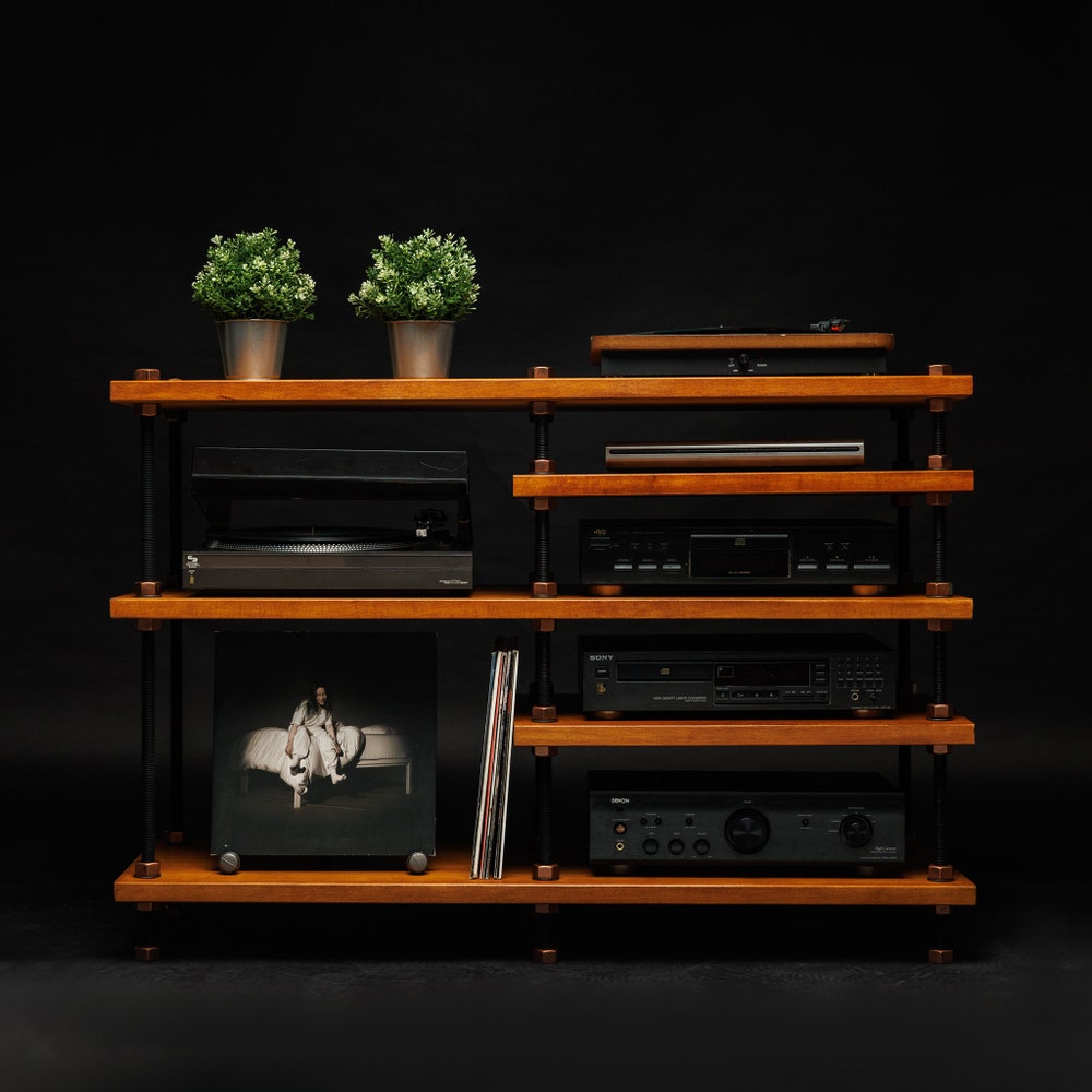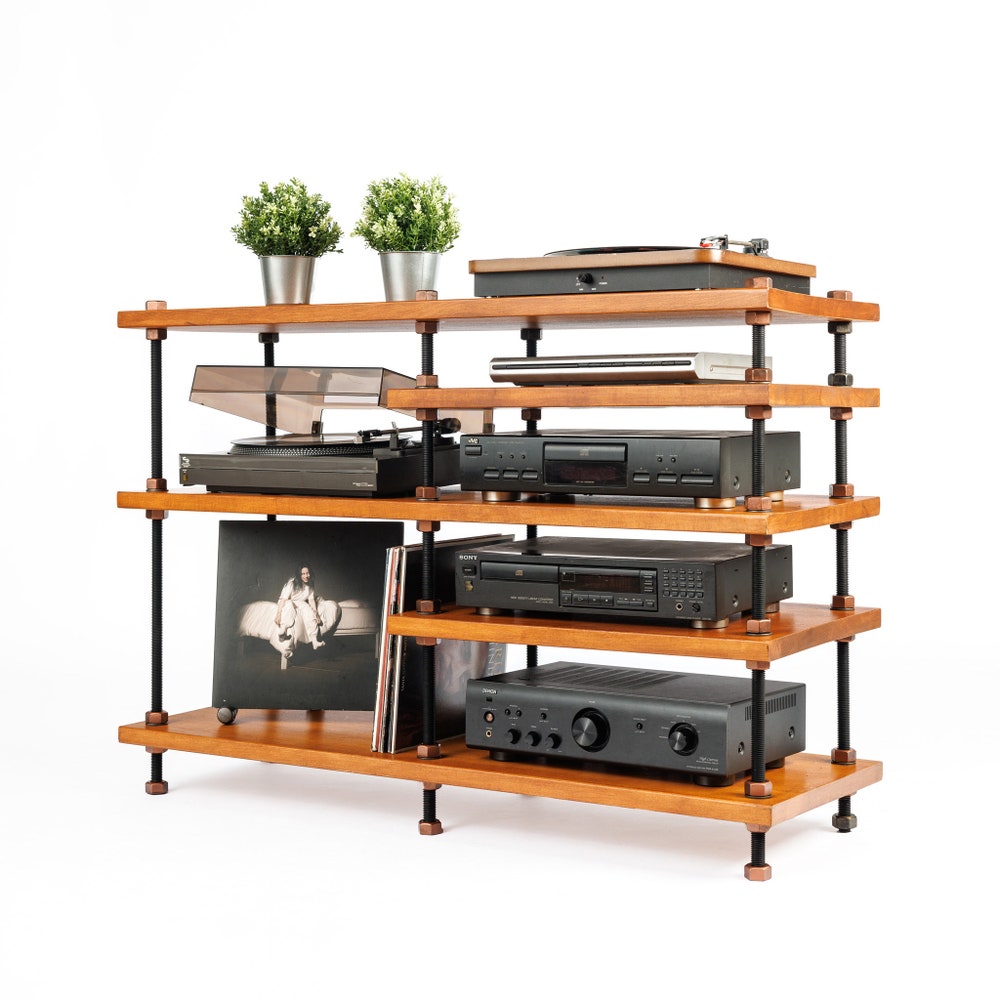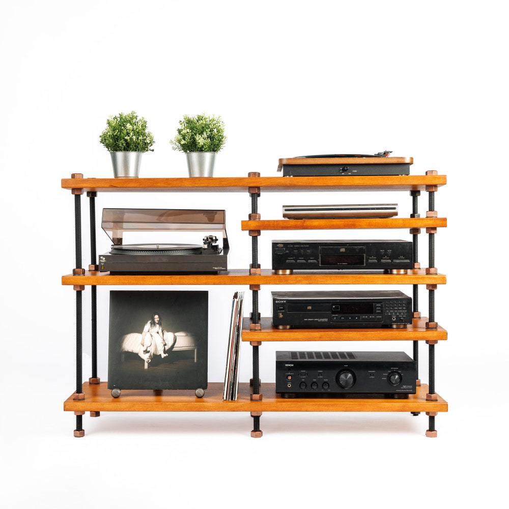 6 in 1 audio rack, Threaded Rods Double stand, LP Turntable Storage, Record Player Stand, Industrial Vinyl Table