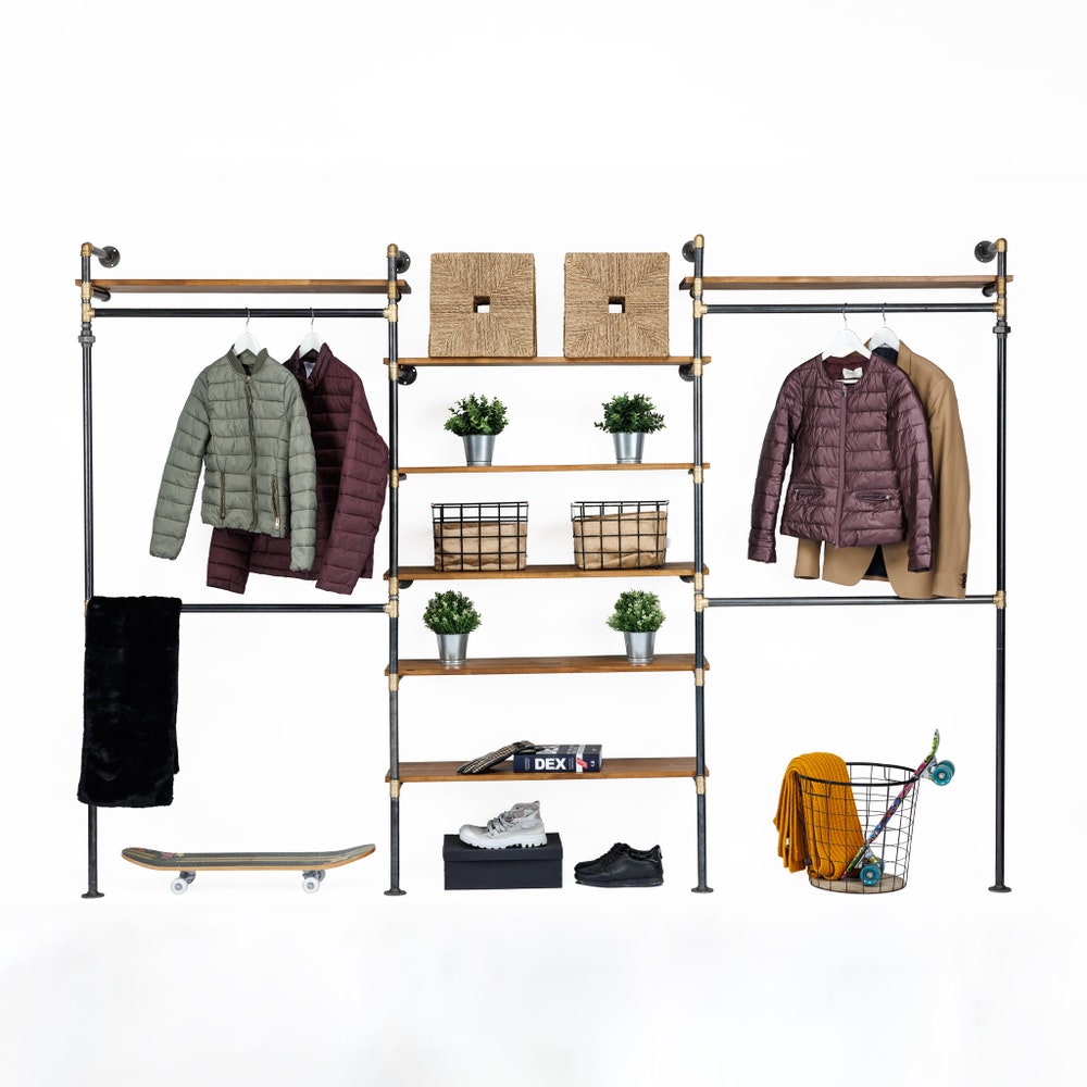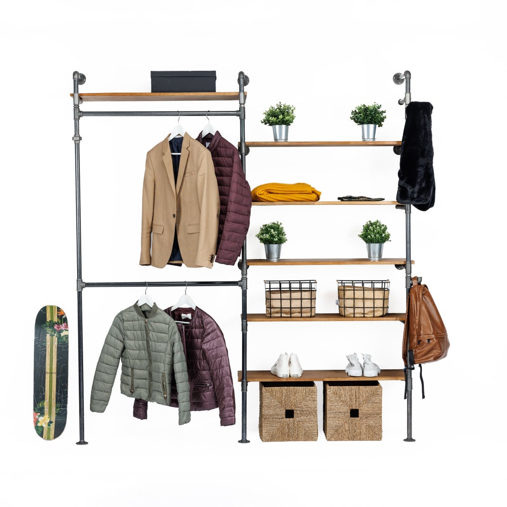2 in 1 Rack variation Wall Rack, Clothing Rack, Retail Fixture, Garment Rack, Industrial Floating Shelves, Clothing Rack Garment Rack