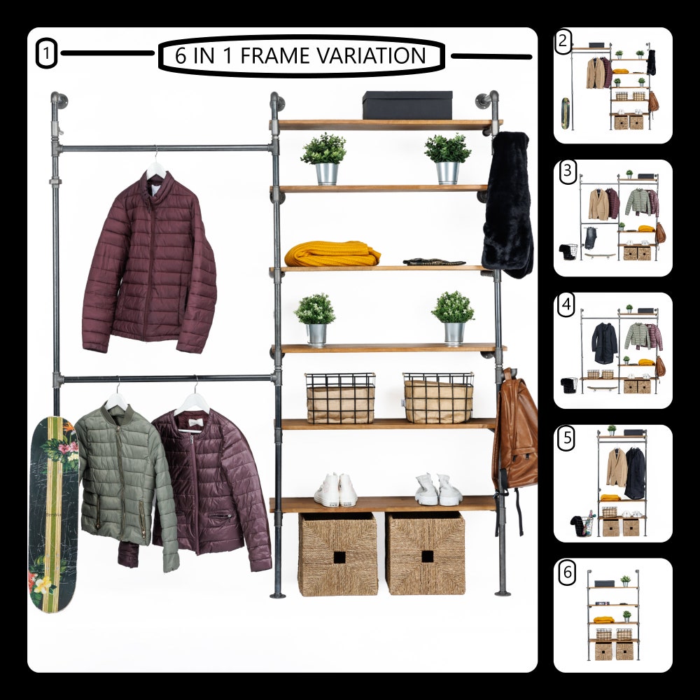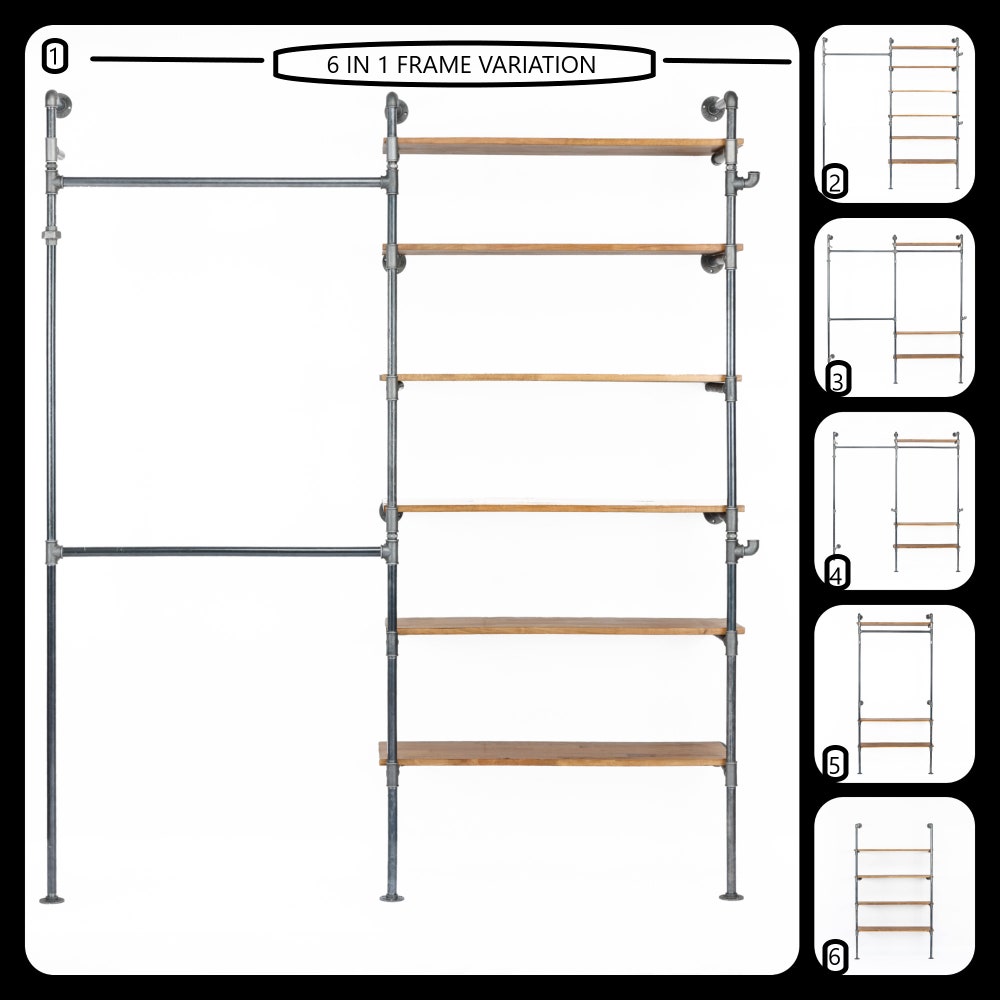 6 in 1 Frame variation Wall Rack, Clothing Rack, Retail Fixture, Garment Rack, Industrial Floating Shelves, Clothing Rack Garment Rack