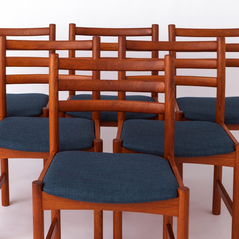 6 Vintage Danish Chairs – 1960s Teak, Refurbished
