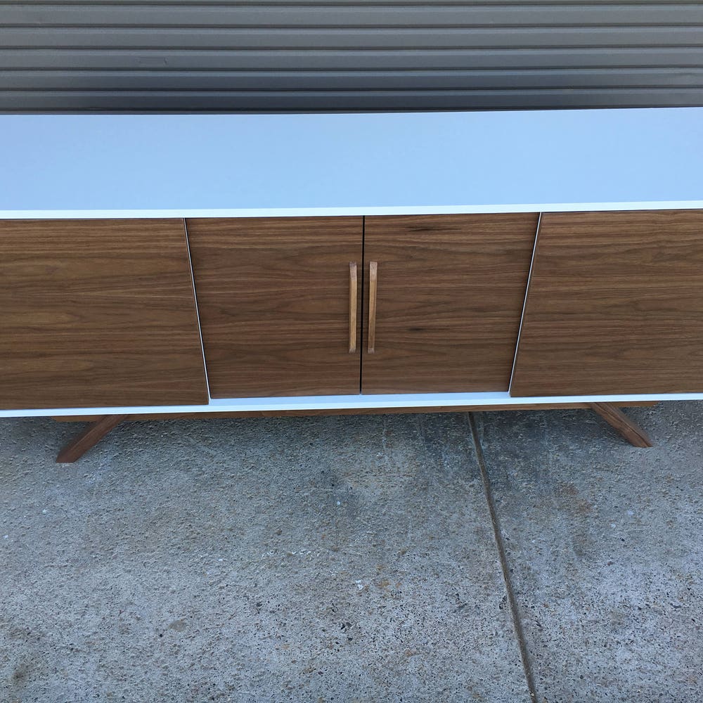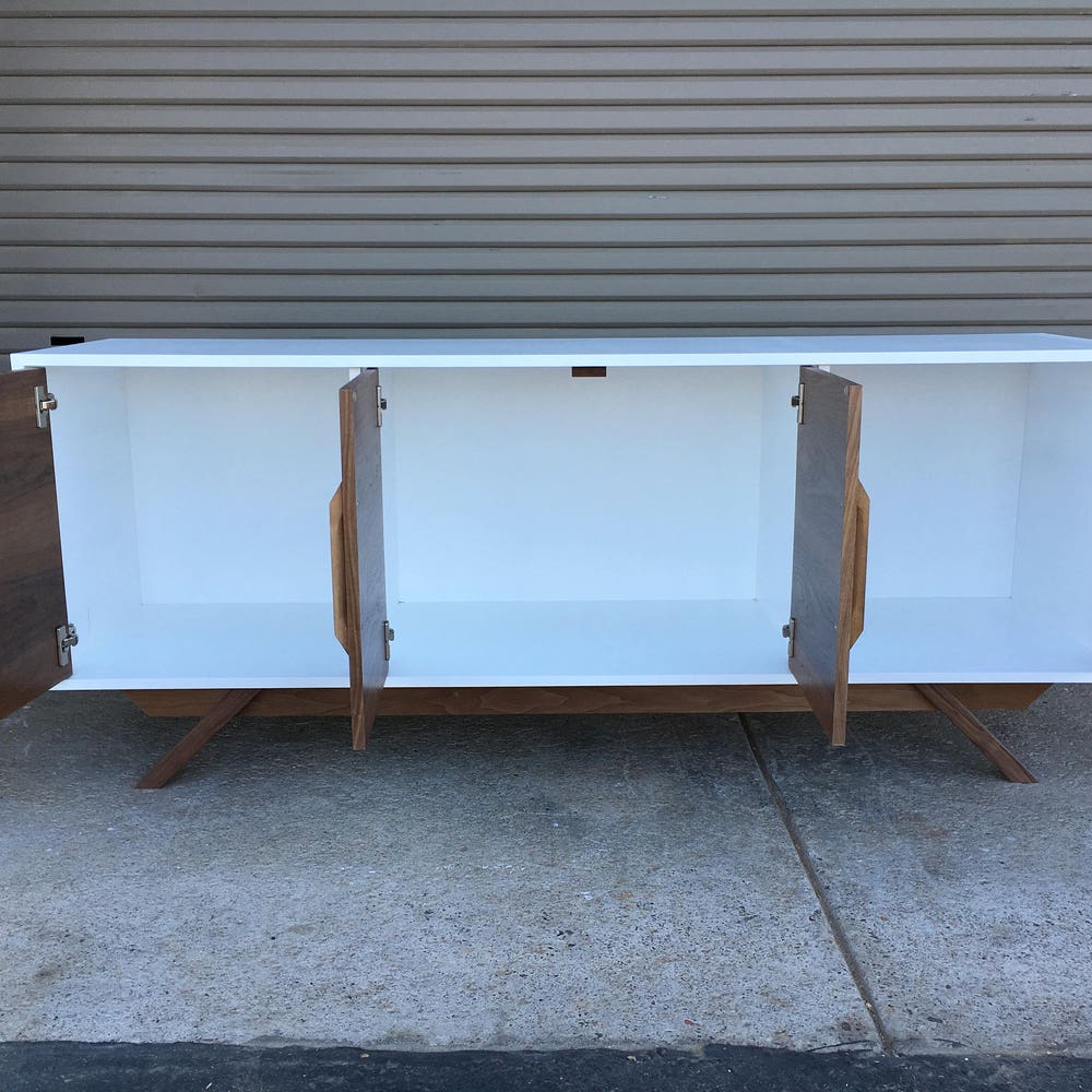 72″ Bespoke Statement Credenza – 4 Doors, No Drawers – White & Walnut