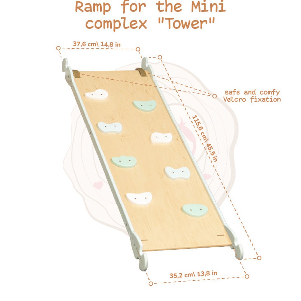 🌟 The double-sided Climbing Ramp is equipped with safety Velcro for attaching to the complex. It can be used as a Slide as well as for Rock Climbing.