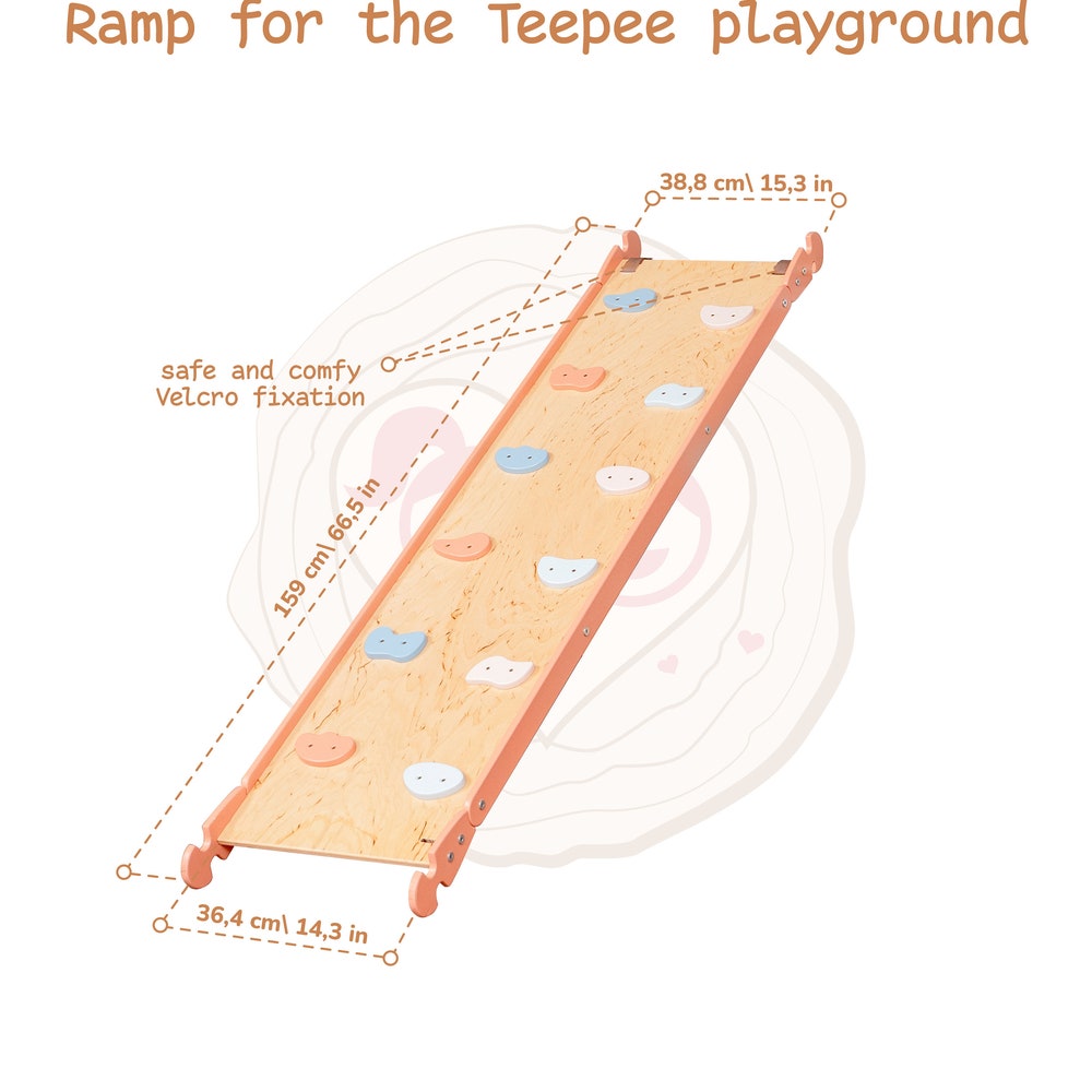 🐝 The double-sided Climbing Ramp is equipped with safety Velcro for attachment to the complex. It can be used as a slide and for rock climbing.
