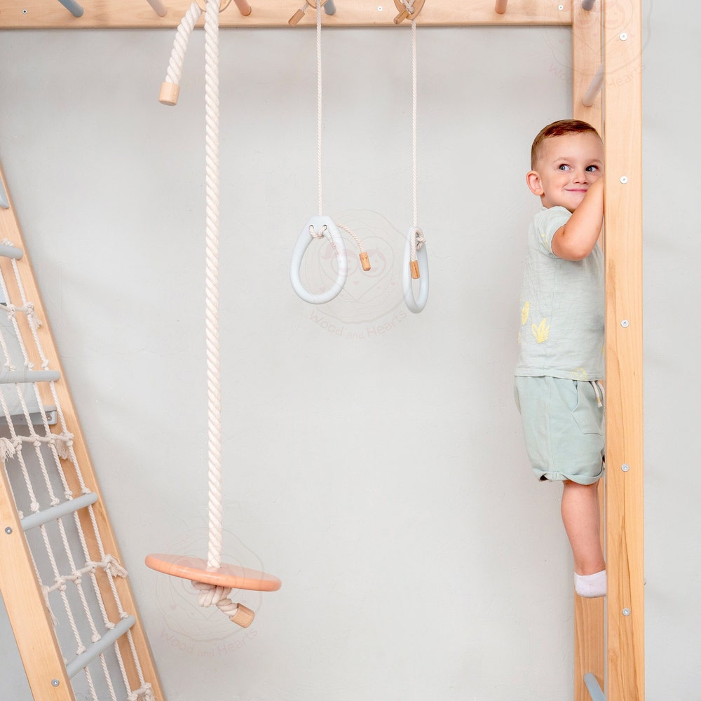 This Listing Consists of these Items: 🐝”Circle” Teepee Indoor Playground 🍓Two-sided Ramp with Velcro for safe attachment🐝 Rope with round Seat🍓 Pair of gymnastics Rings🐝 Rope with wooden Spheres🍓 Rope Ladder The product is available in these colors:🐝 Natural wood🍓 Natural wood + Pastel You can also choose the preferable Soft Play Equipment from the […]