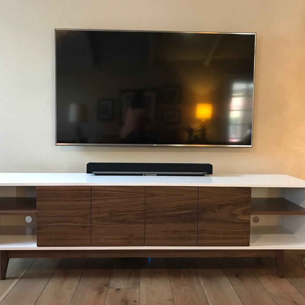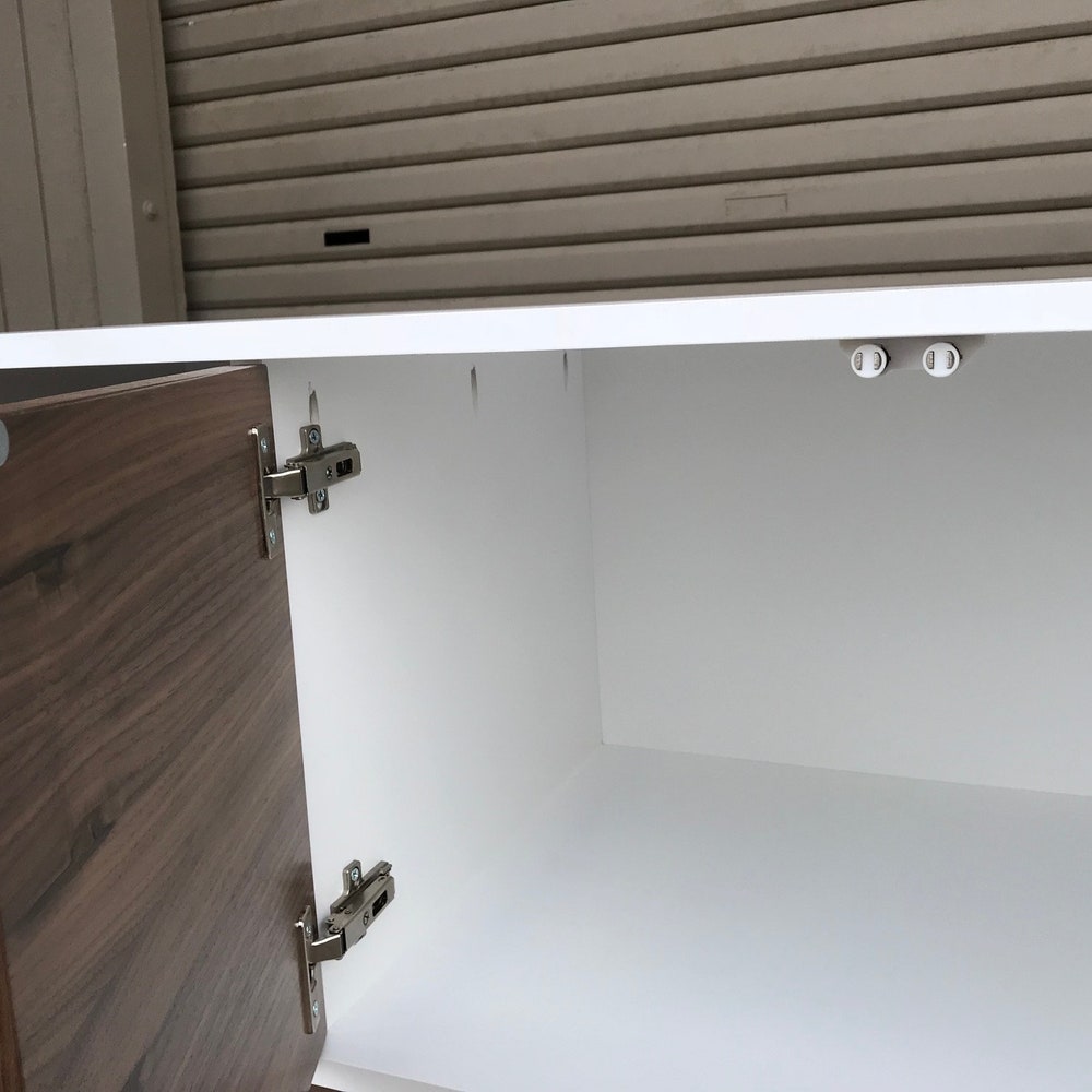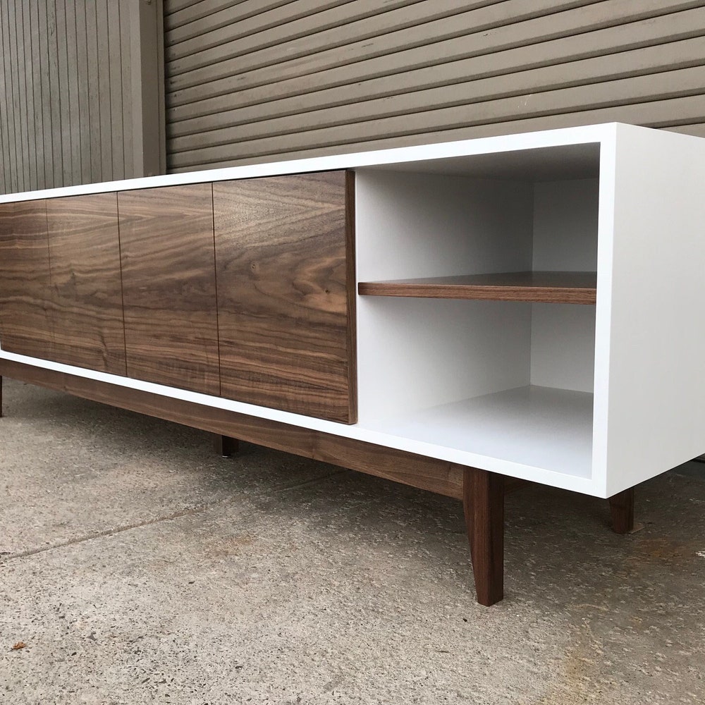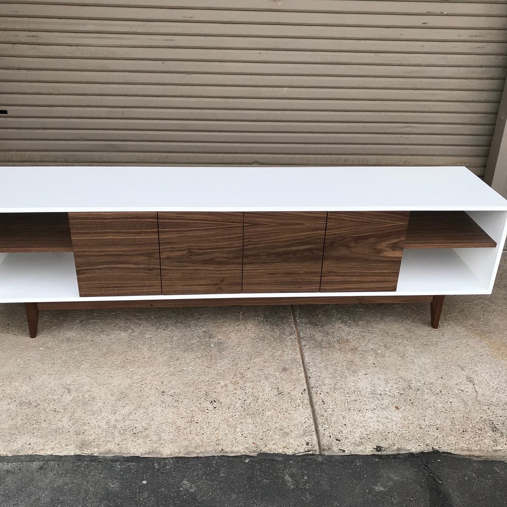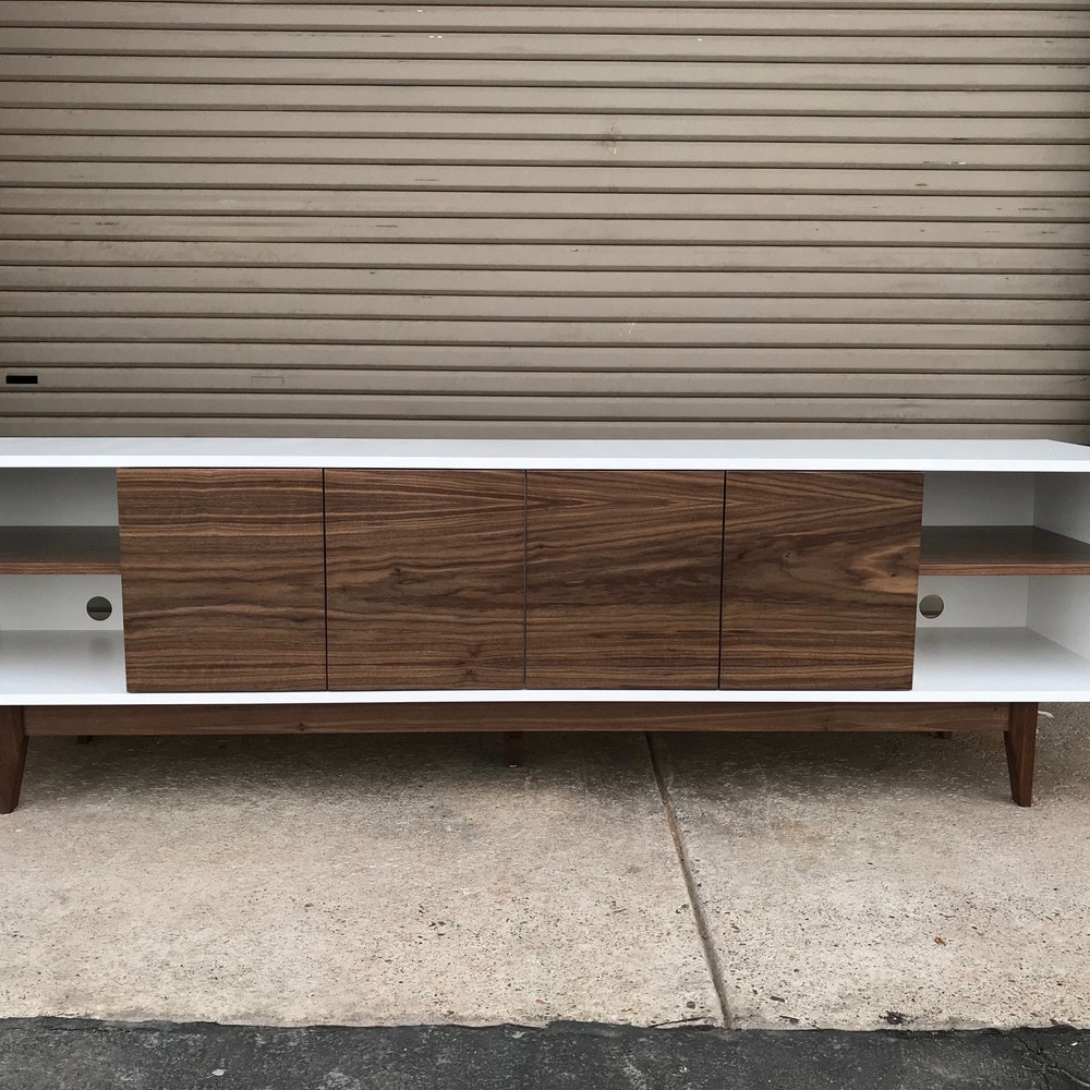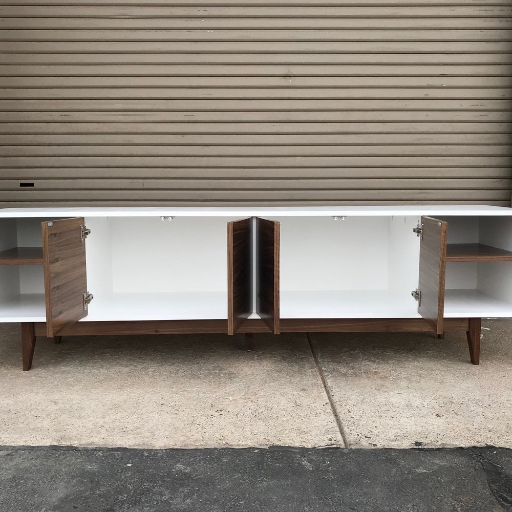 8′ Mid Century Style TV Cabinet / Buffet / Liquor Cabinet / Credenza – White & Walnut with straight leg base ~ FREE SHIPPING!