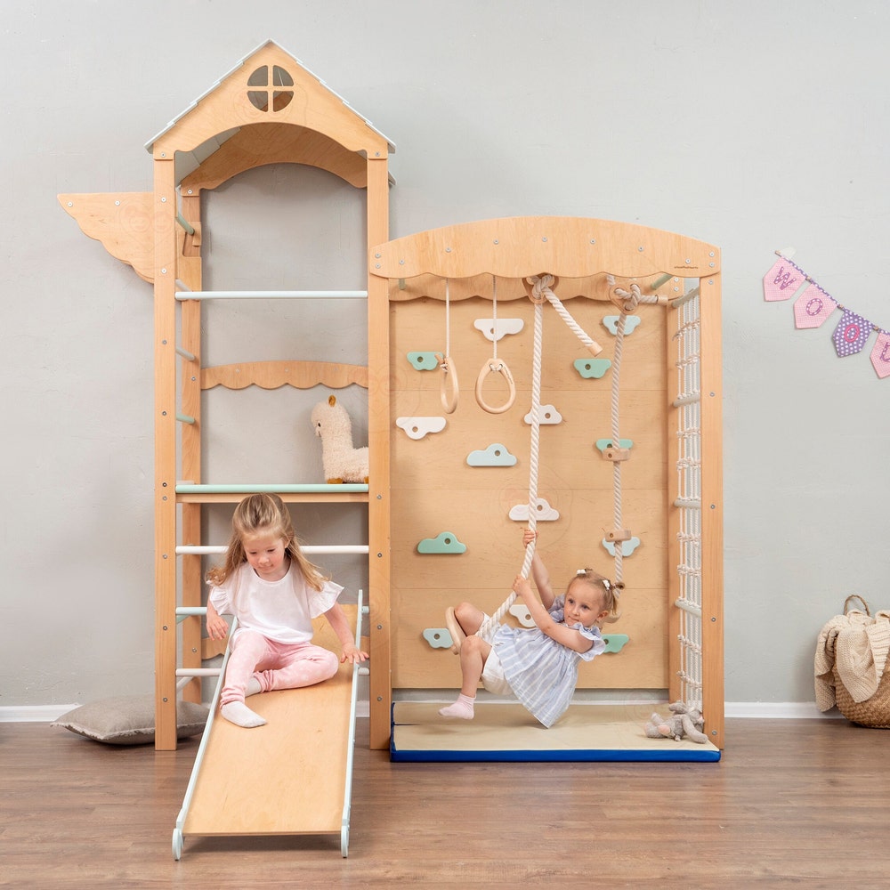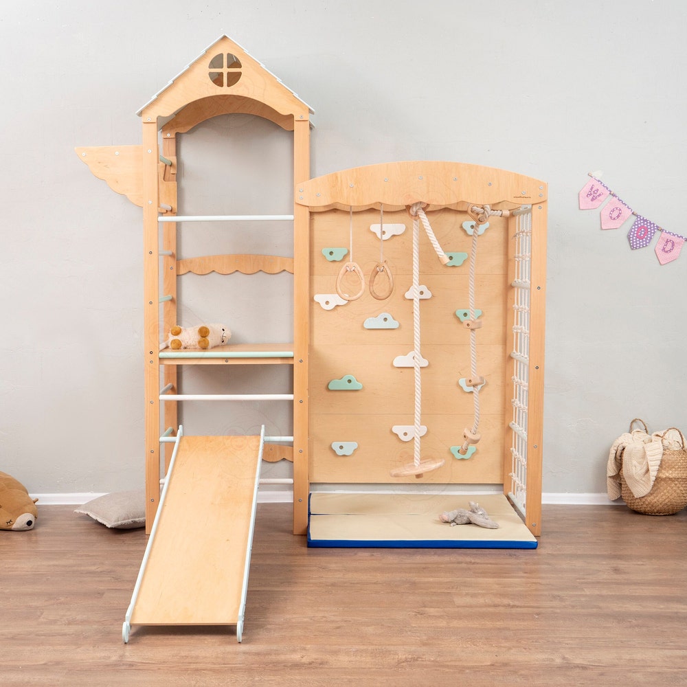 ✨ This Listing Consists of 6 items: 🌟 Climbing complex “Tower”✨ Big two-sided Ramp🌟 Rope with round seat✨ Pair of gymnastic rings🌟 Rope with wooden spheres✨ Big and Small Playmats for The Complex and Ramp You can also choose the preferable color from the options:🌟 Natural Wood + Pastel✨ White + Pastel ● Please indicate […]