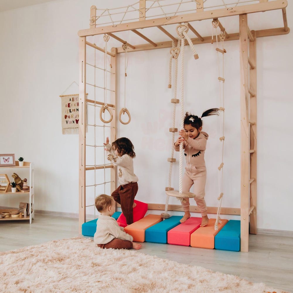 Montessori-inspired Indoor Playground Set for Kids with Soft Play Blocks 🌈 This Listing Consists of the folowing Climbing Items:• Swedish ladder “Bridge”• Pair of Gymnastic Rings• Single Rope Swing with Round Seat• Climbing Rope with Wooden Spheres• Rope Ladder• Soft Building Blocks 7 pcs You can Choose the preferable Color of the Swedish ladder “Bridge” […]