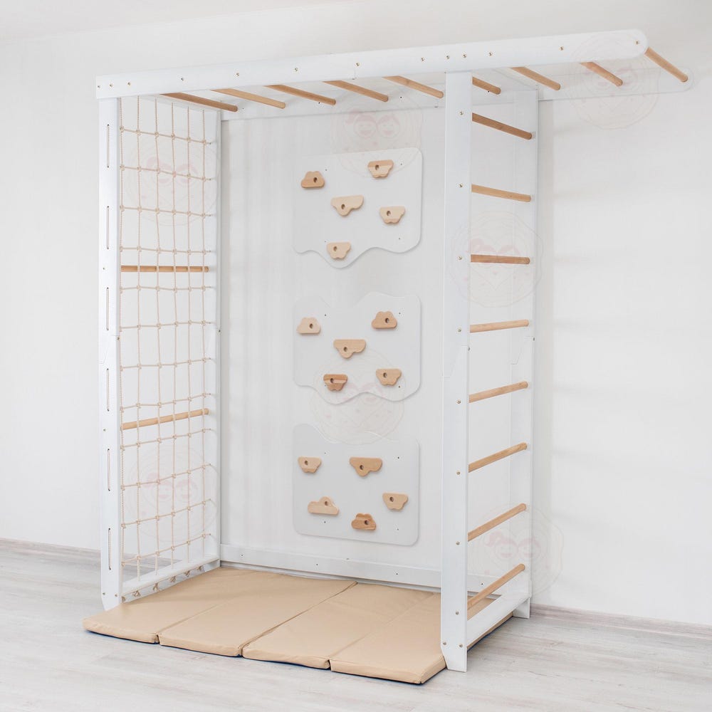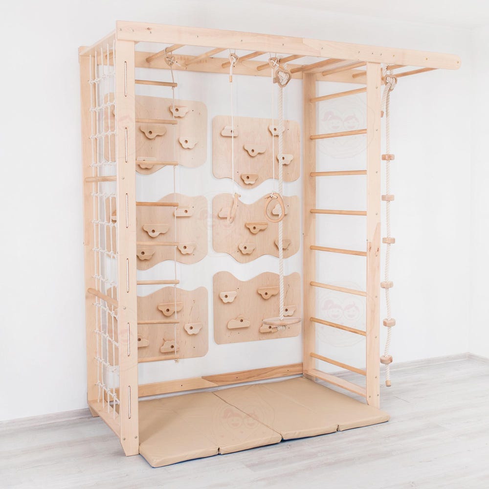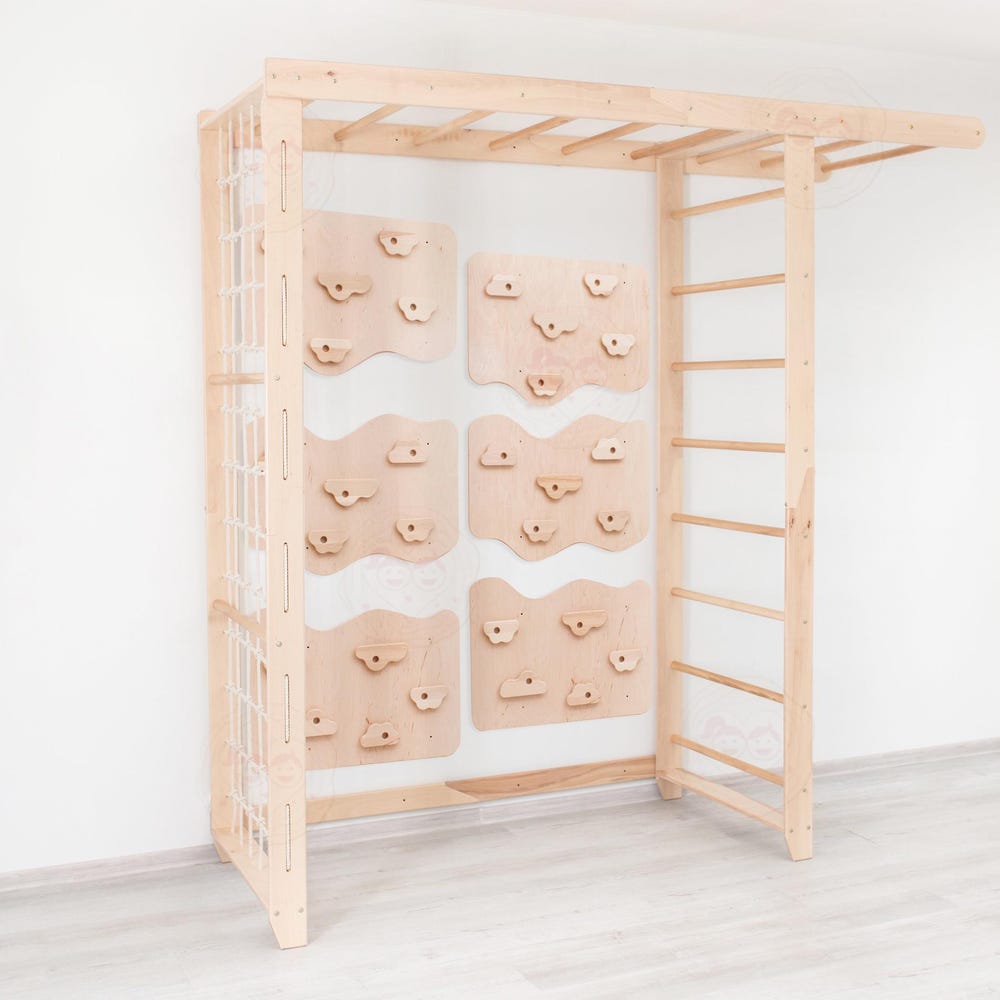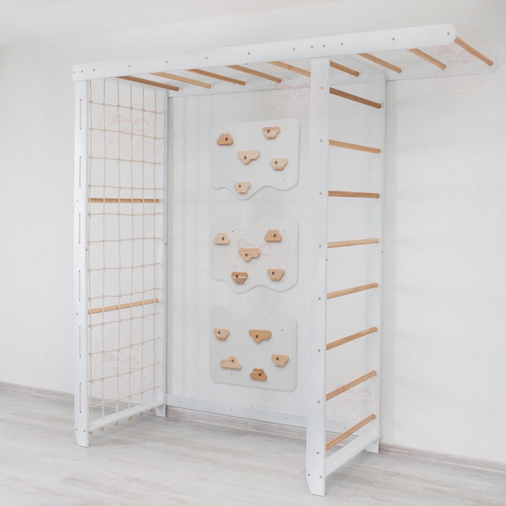The Listing includes the Swedish Ladder “Big Bridge” Set + Climbing Wall panels: