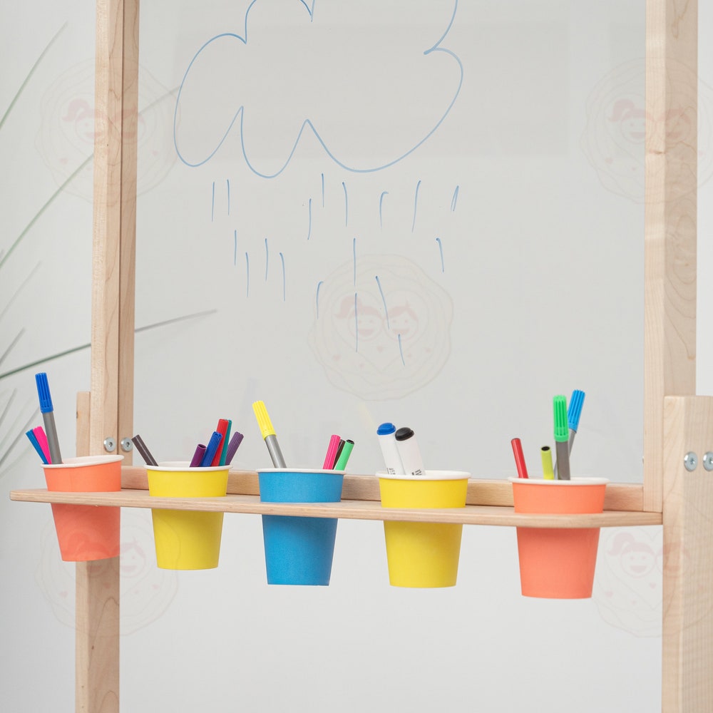 ✔️ Convenient stand: The built-in shelf holds cups for brushes and markers, making it easy for your child to access their tools.