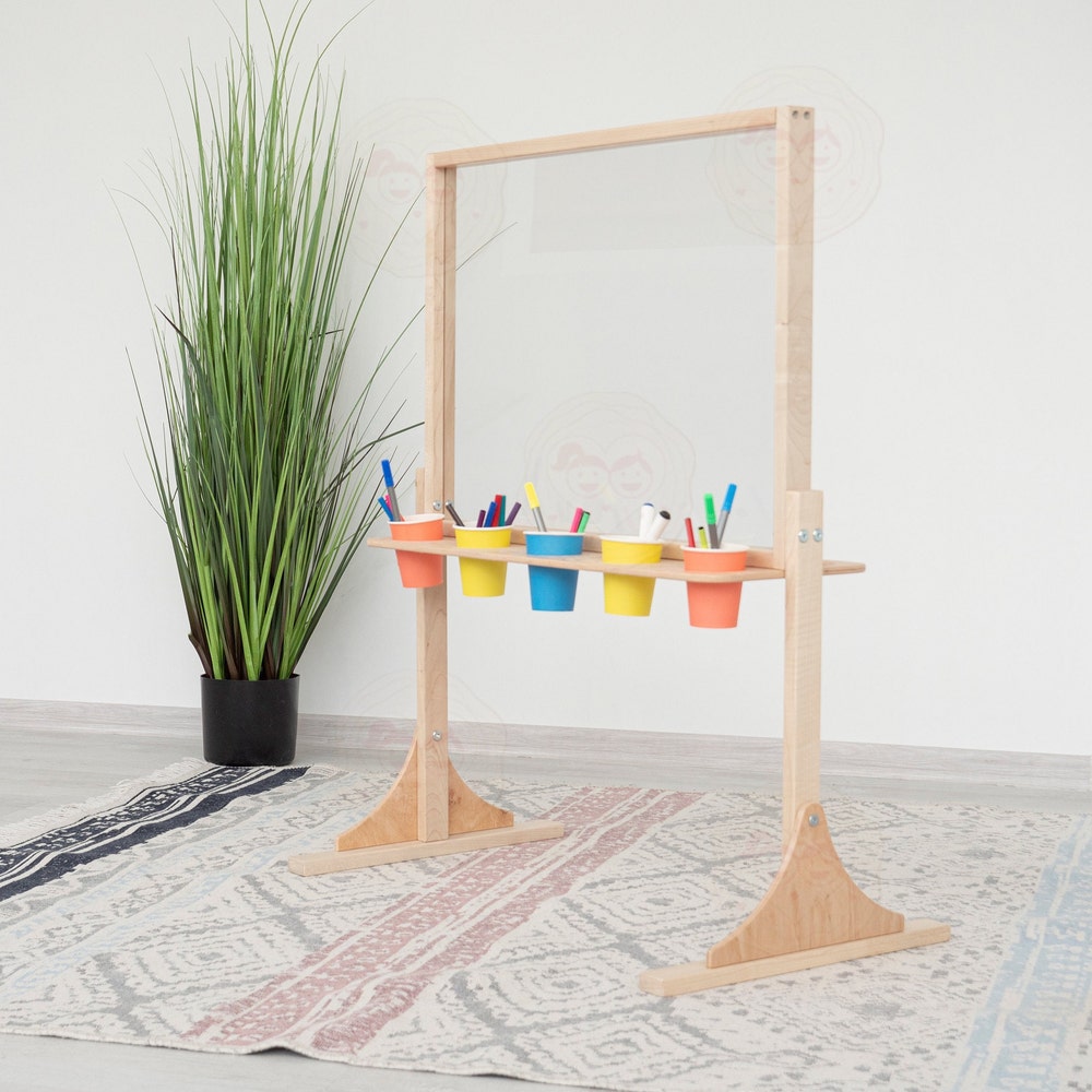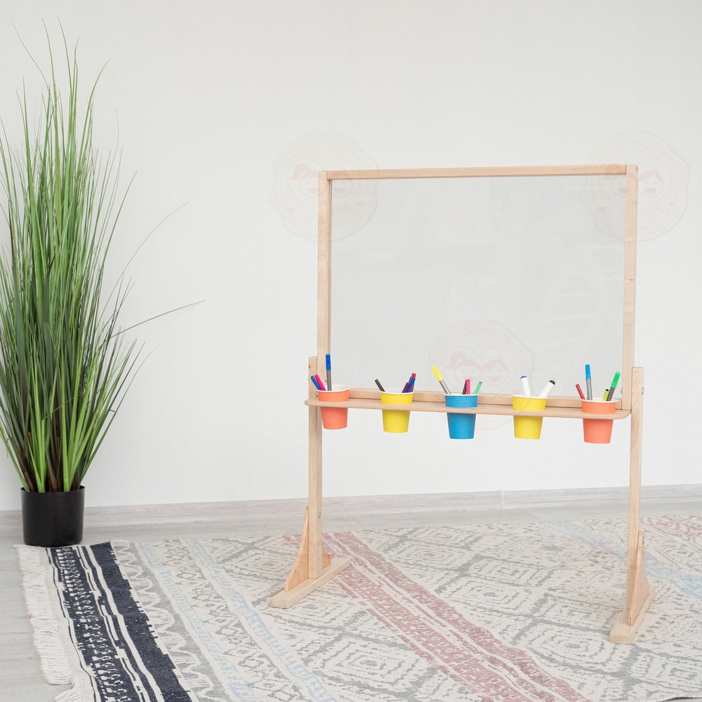 Acrylic Easel, Washable Easel, Wipe Off Easel, Art Display, Wood Easel, Children’s Wood Free Standing Art Board