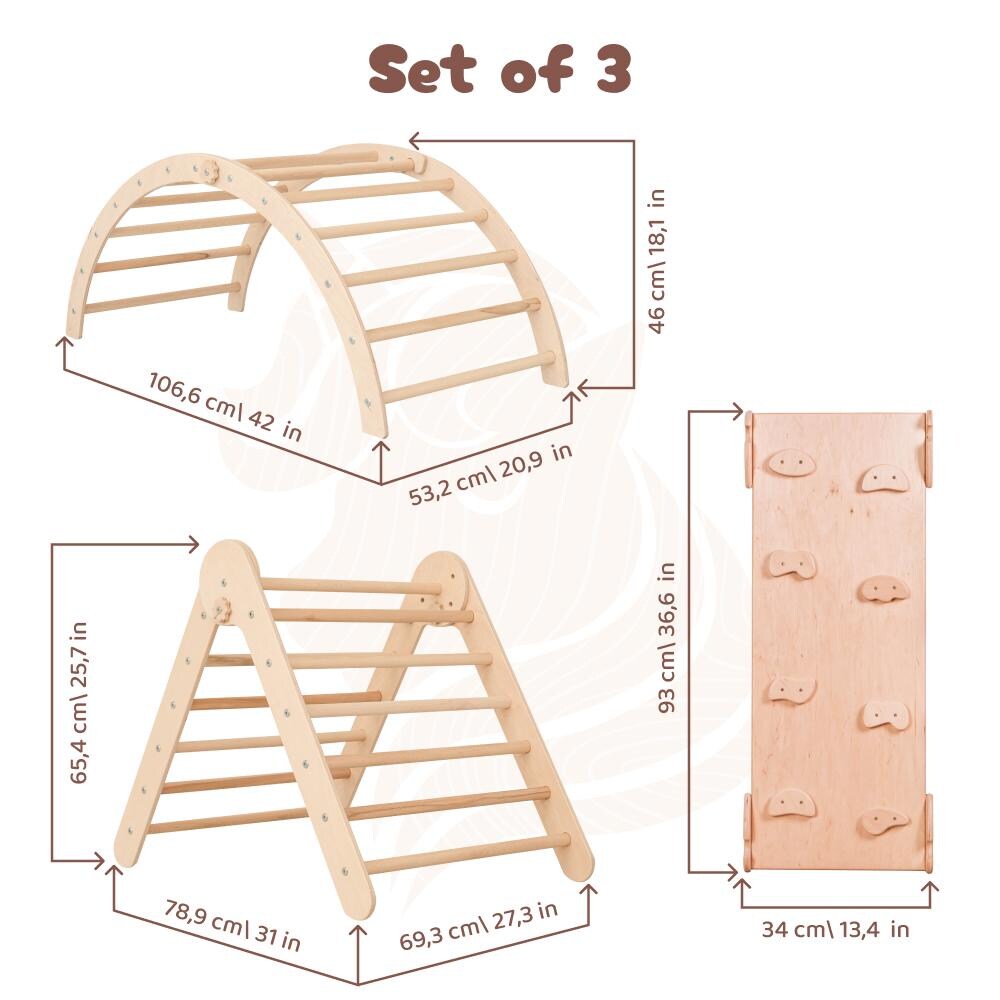 Adjustable 3-in-1 Wooden Baby Gym, Montessori Climber and Play Gym, Foldable Climbing Arch & Slide