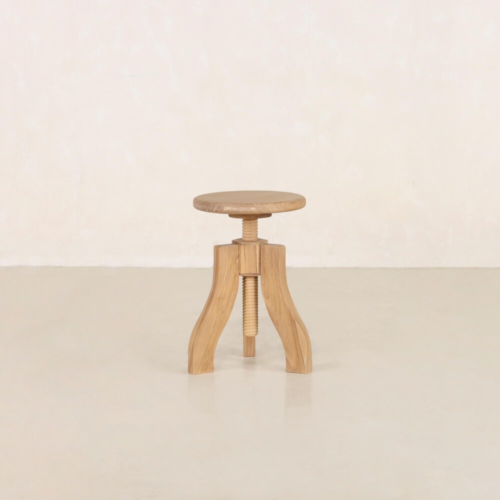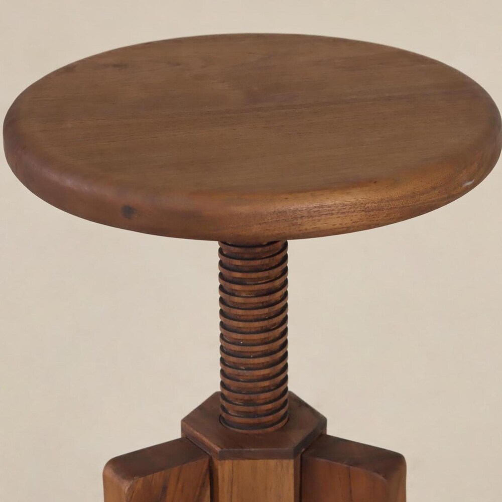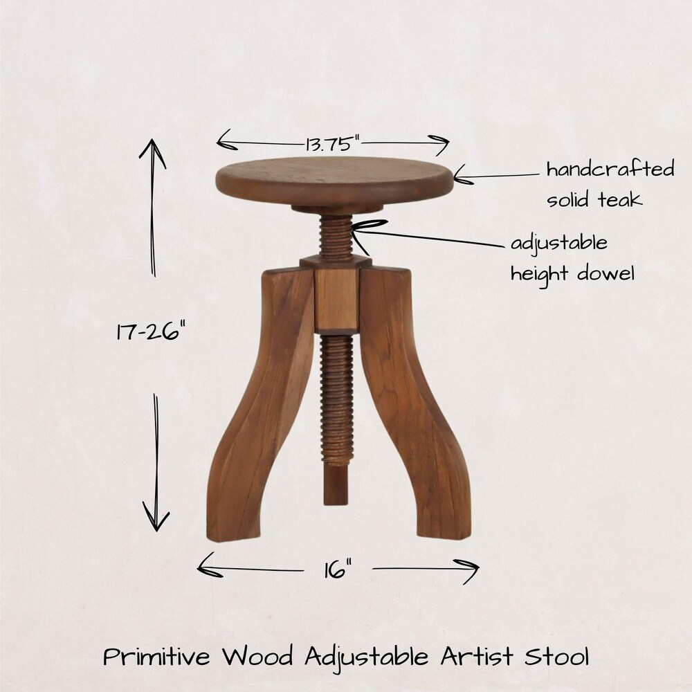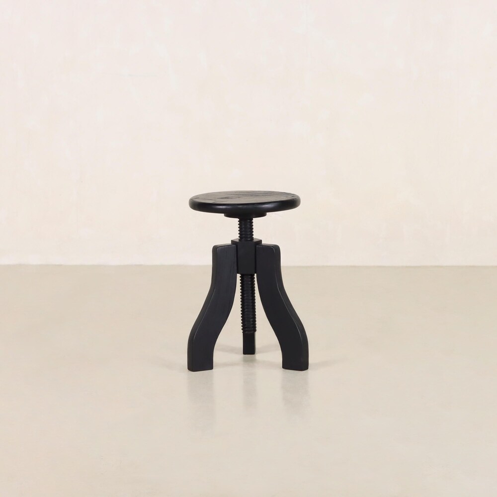 This handcrafted adjustable-height artist stool doubles as a multipurpose side table, offering a timeless blend of rustic charm and functional adaptability. Inspired by vintage drafting stools, it features a wooden swivel screw mechanism that allows for effortless height adjustment—perfect as a side table, nightstand, display stand, or occasional seating.