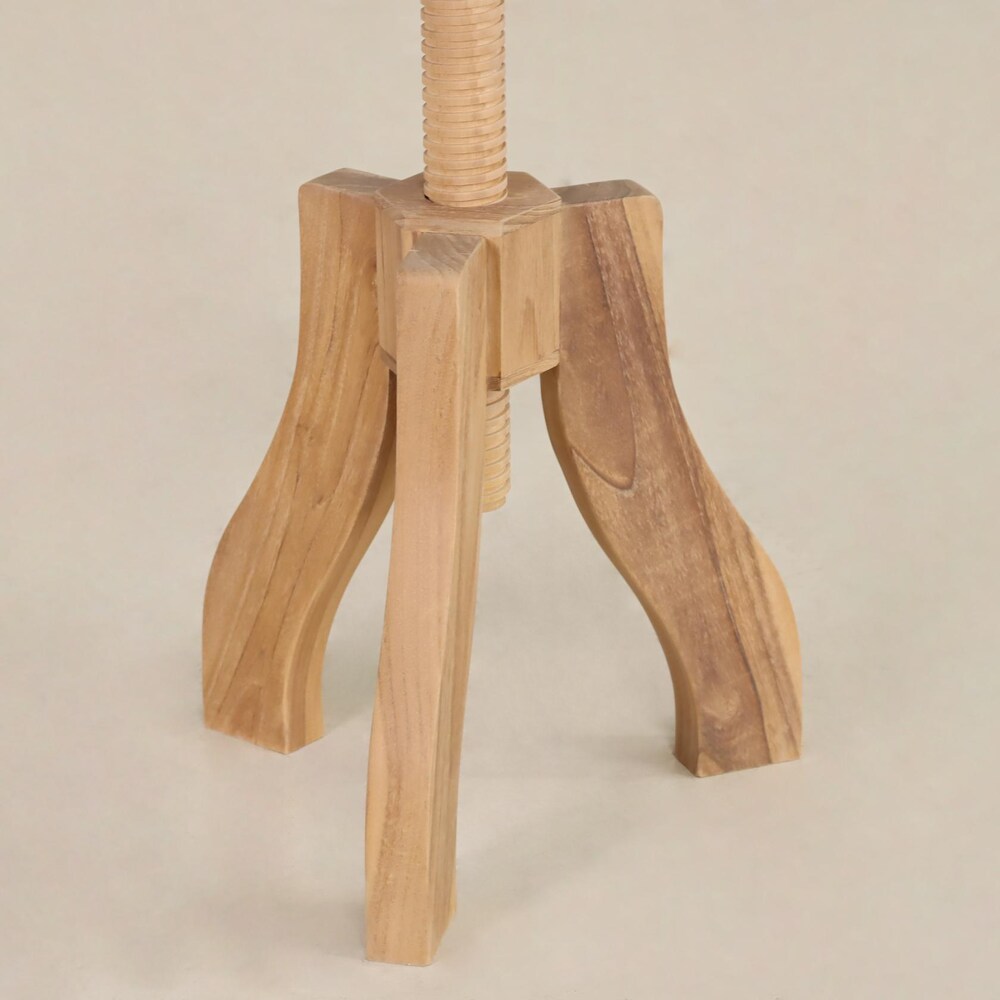 ✨ Handcrafted from solid teak, each piece is uniquely shaped, embracing natural imperfections that highlight its primitive character. Sculpted legs and a smooth-turning screw mechanism provide both stability and flexibility, making it a functional work surface or sculptural accent piece for any home.