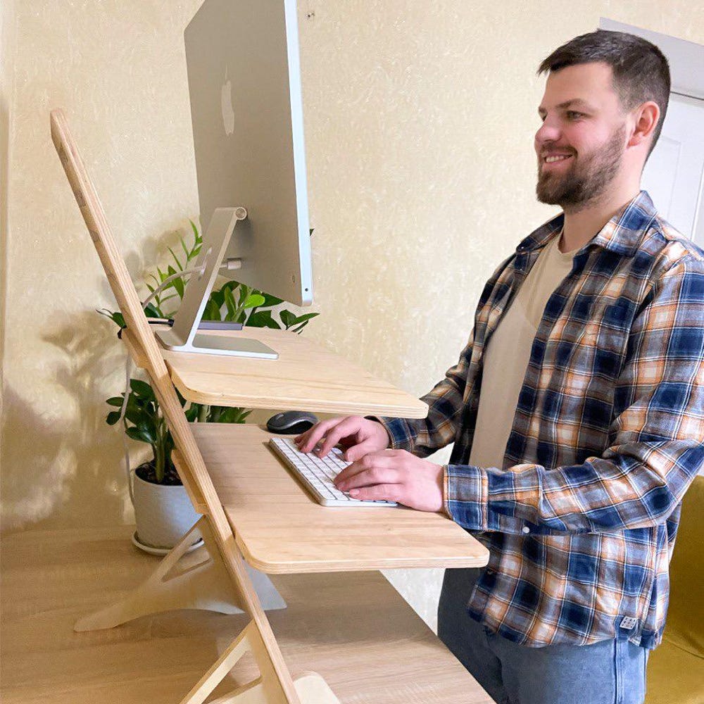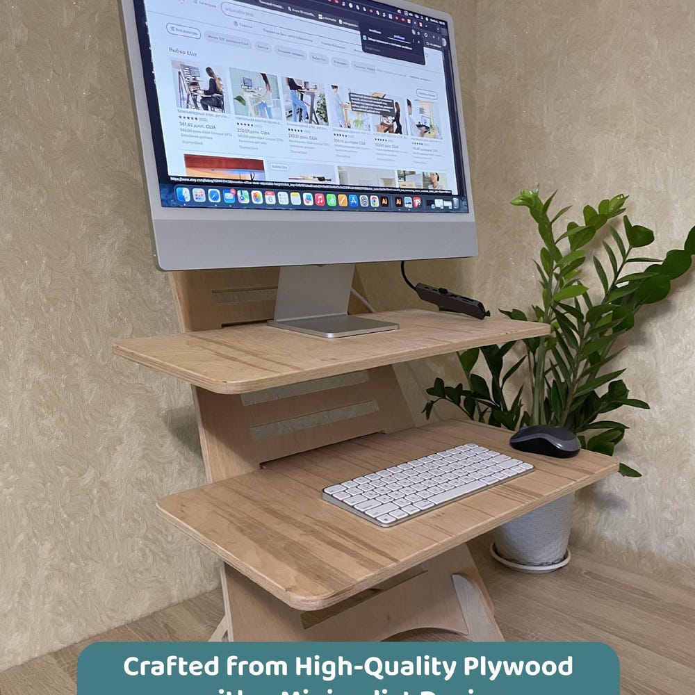 Adjustable Plywood Standing Desk Converter | Ergonomic Sit-Stand Workstation | Minimalist Wooden Desk with Height Adjustment