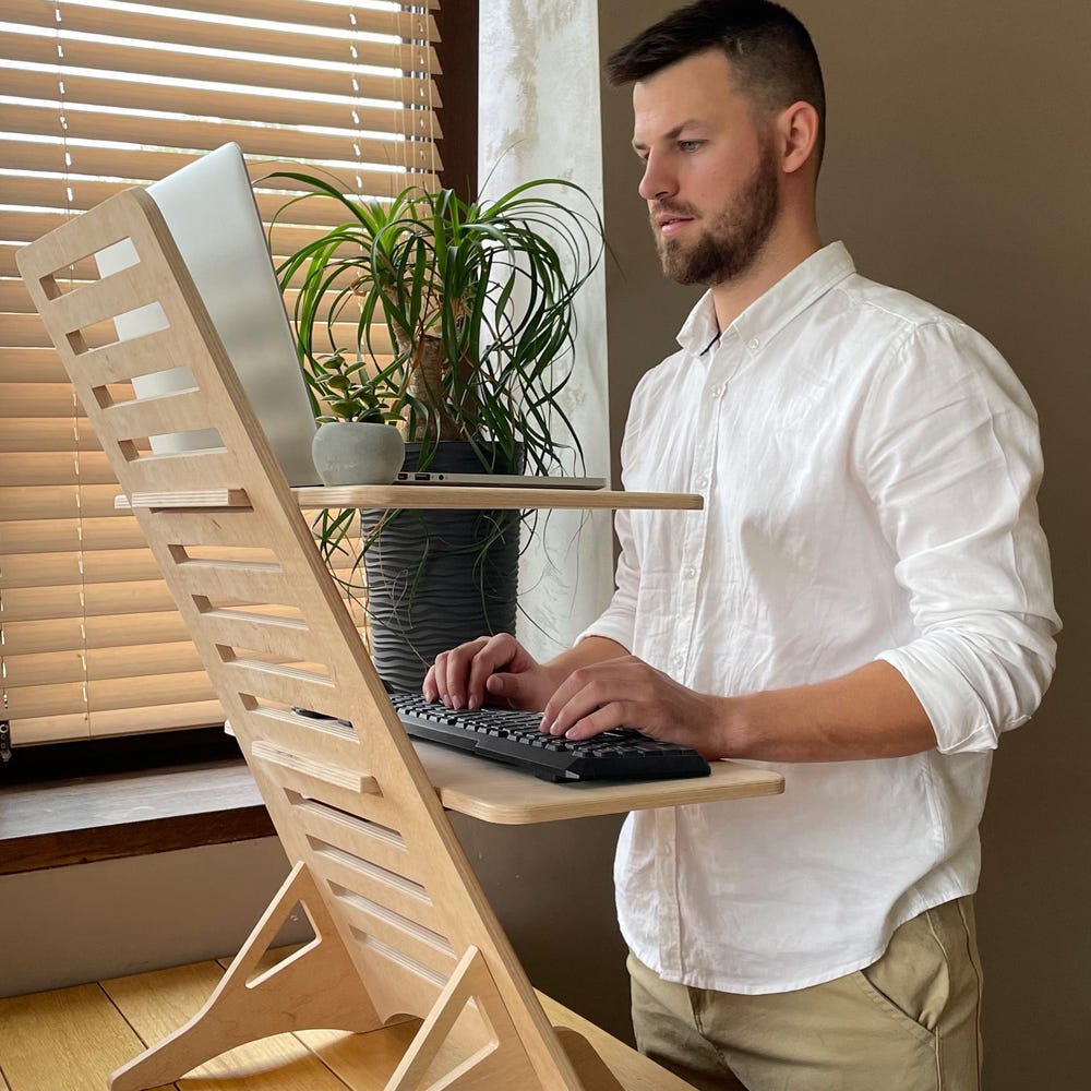 Wooden standing desk riser, Wood standing desk converter, Natural standing desk converter, Wooden desktop riser, Wood sit-stand desk converter, Adjustable wooden standing desk converter, Wooden standing desk platform, Wood height-adjustable desk converter, Standing desk converter with wood finish, Wooden stand-up desk riser, Standing desk, Adjustable desk, Sit-stand desk, Stand-up desk, Height-adjustable desk, Standing workstation, Standing office desk, Standing desk converter