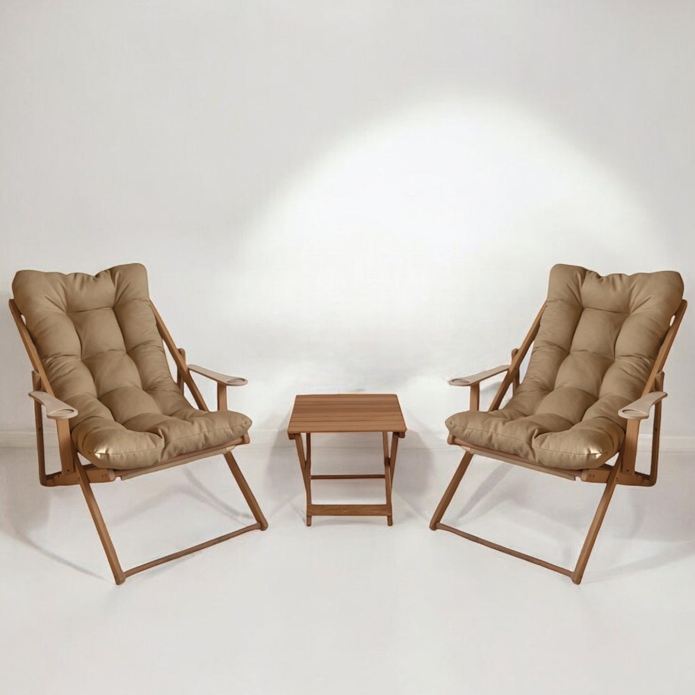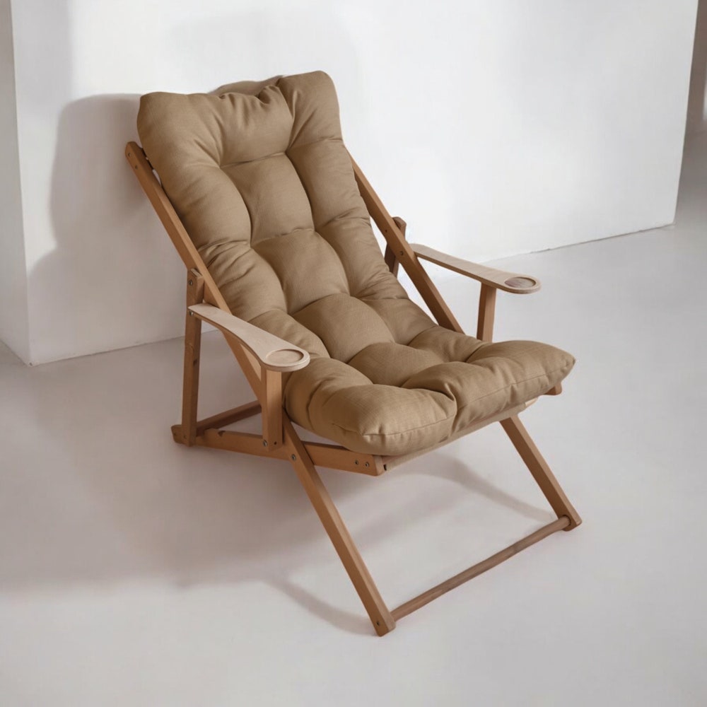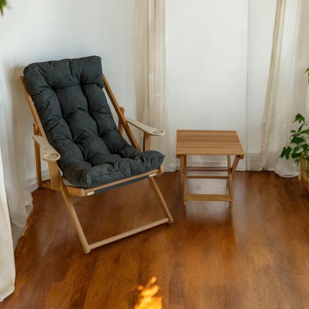 🌟 Introducing our handcrafted Premium Wooden Sun Lounger, the perfect addition to your garden, patio, or poolside. Designed for ultimate relaxation, this elegant adjustable chaise lounge chair masterfully combines functionality with a touch of rustic charm. Our foldable deck chair is your go-to for outdoor comfort and style. The sturdy wooden frame is complemented by a plush, water-repellent cushion, making it ideal for lounging by the pool or soaking up the sun on your patio.