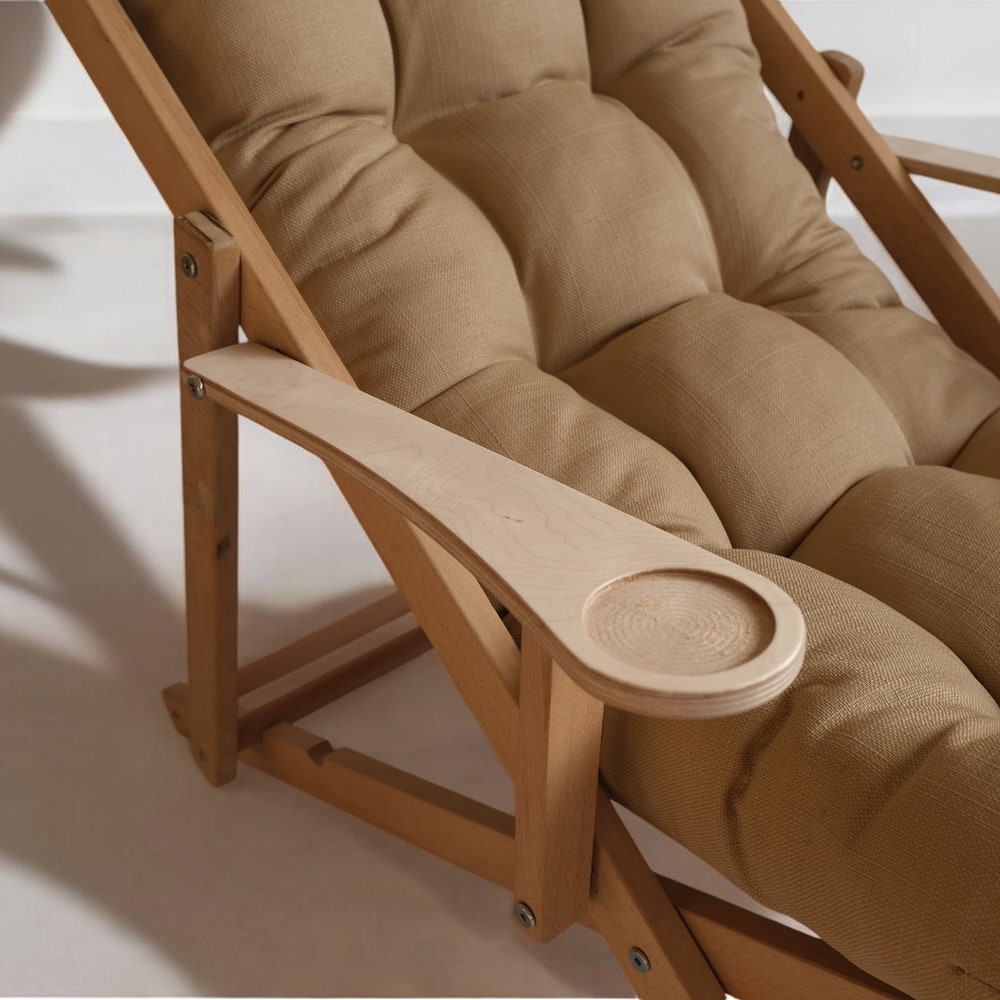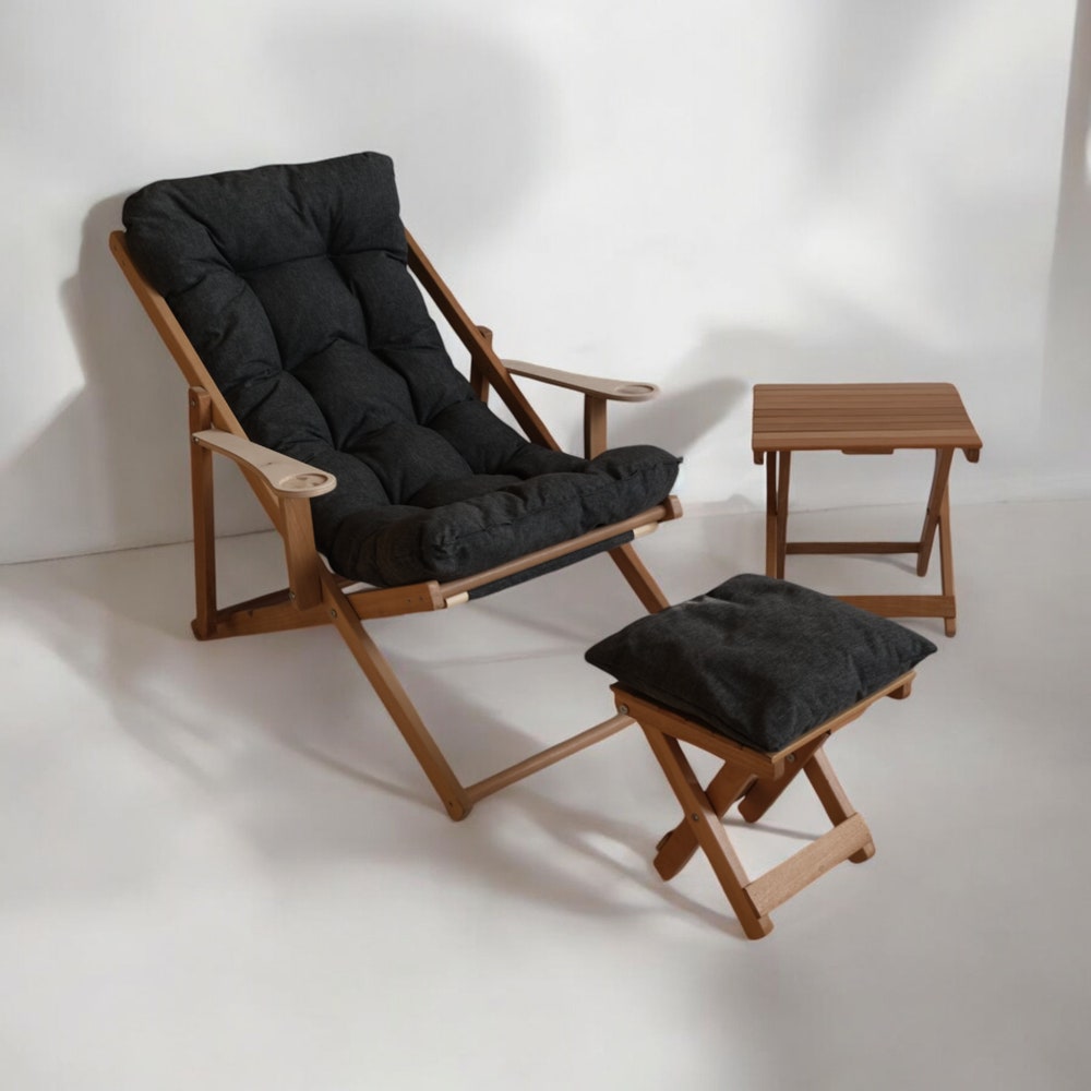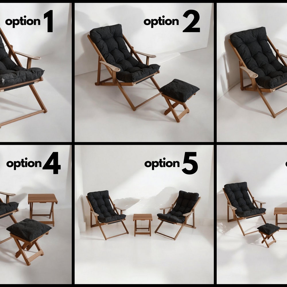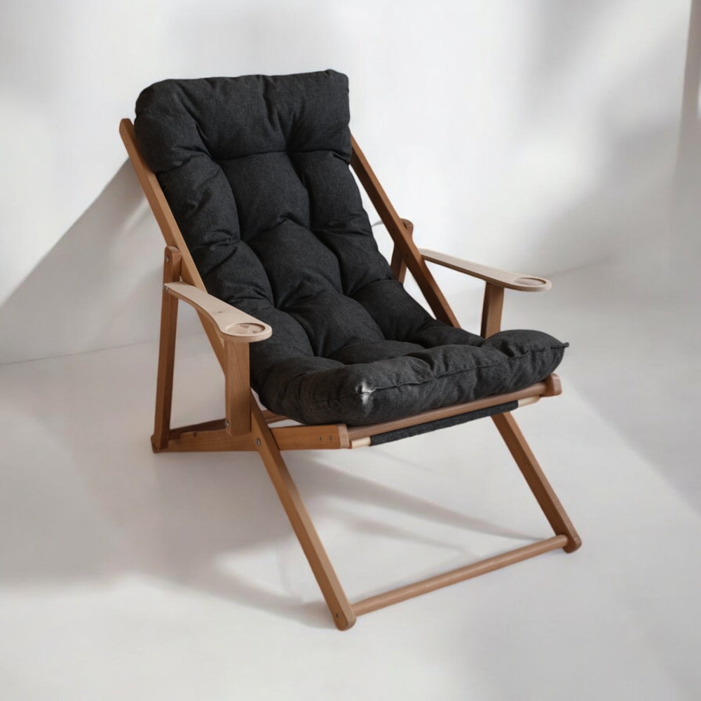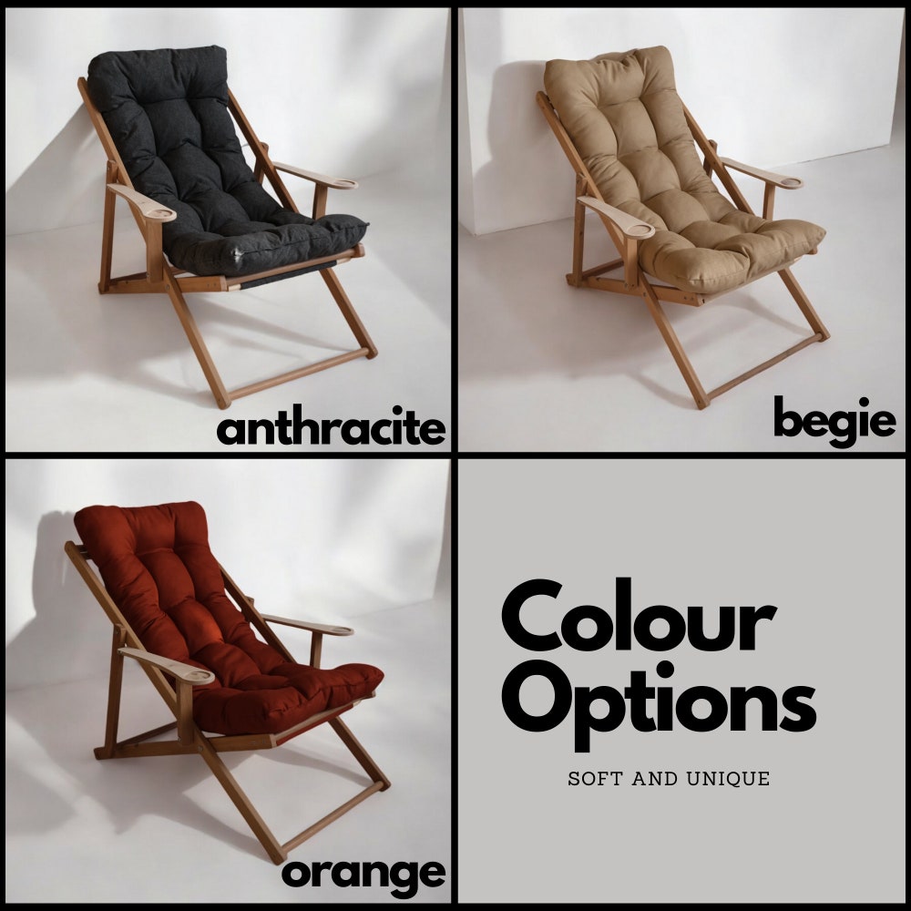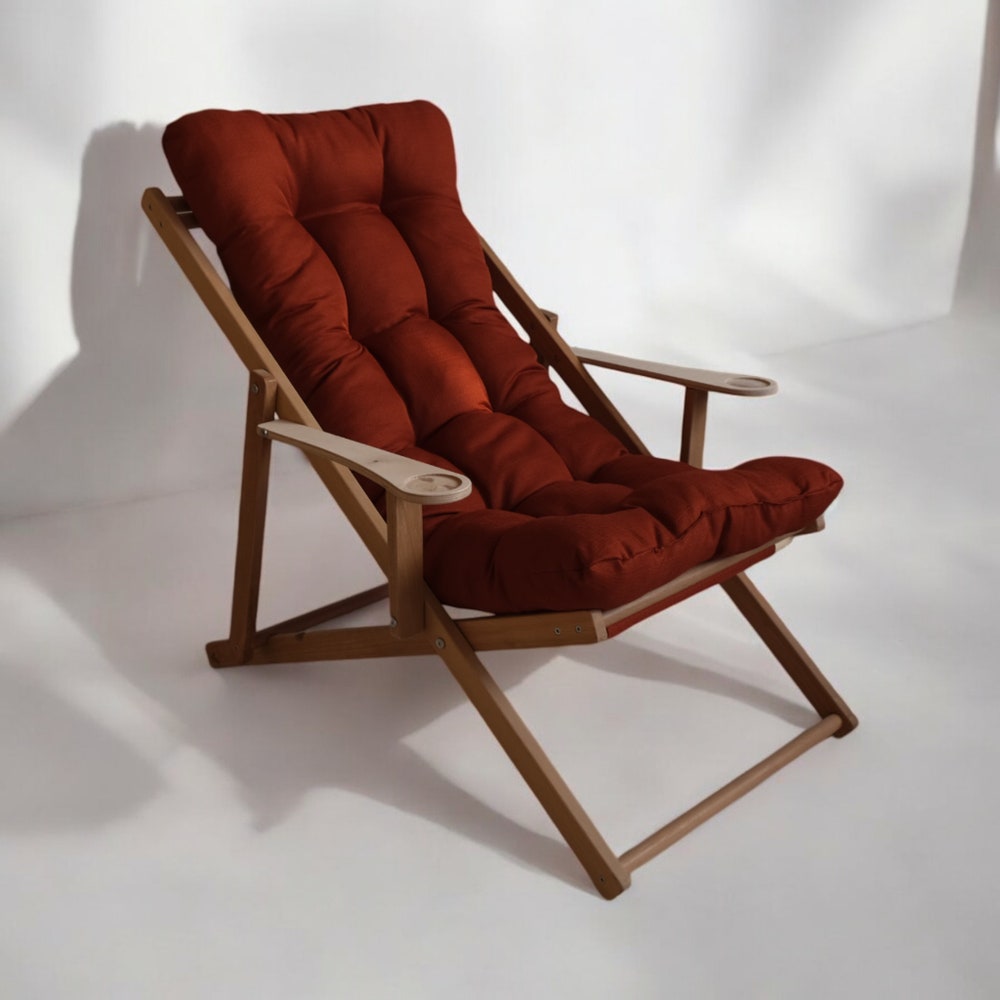 🌟 Introducing our handcrafted Premium Wooden Sun Lounger, the perfect addition to your garden, patio, or poolside. Designed for ultimate relaxation, this elegant adjustable chaise lounge chair masterfully combines functionality with a touch of rustic charm. Our foldable deck chair is your go-to for outdoor comfort and style. The sturdy wooden frame is complemented by a plush, water-repellent cushion, making it ideal for lounging by the pool or soaking up the sun on your patio.