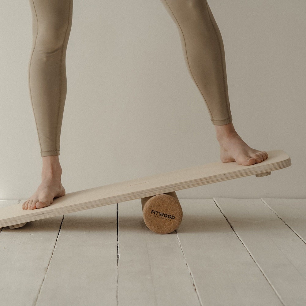 ALAVA balance board is made from sustainably sourced high-quality birch plywood, and it is available in birch and white. The board comes with a firm cork roller that is made from natural cork and it can also be used as a massage roller or for exercises such as Pilates. To avoid slipping we recommend using the board barefoot or with appropriate shoes, and for better grip you can also attach the additional anti-slip tapes that come in the package onto your board. ALAVA balance board can withstand up to 120 kg (265 lbs) of weight and it has stoppers on both ends of the board that prevent sliding off the roller.