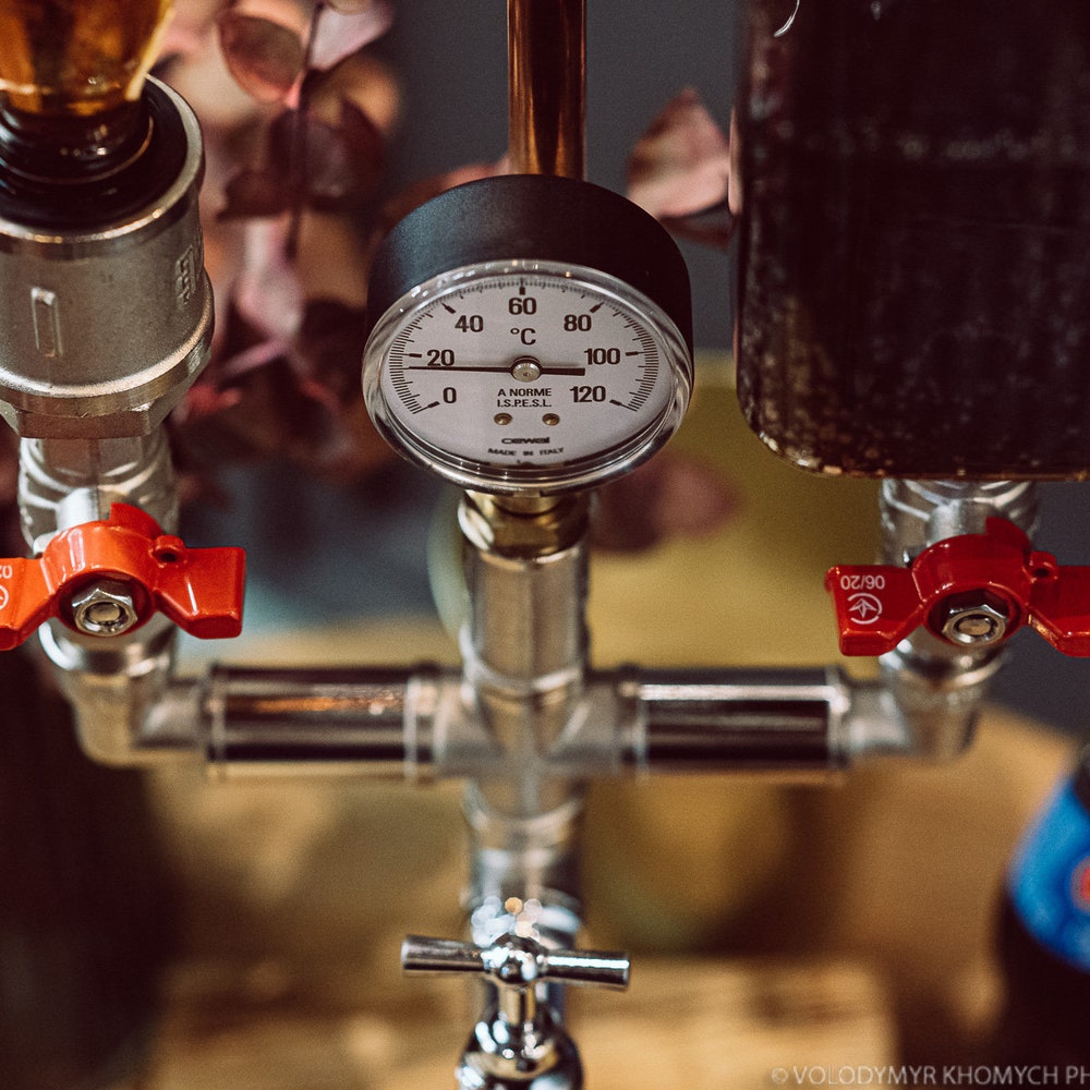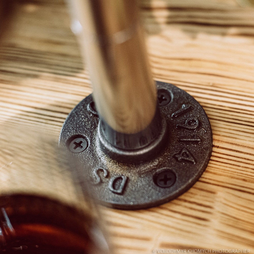 The product is made of plumbing things, which create an interesting vintage industrial look. The dispenser system is built onto a board of wood which is hand stained and varnished.
