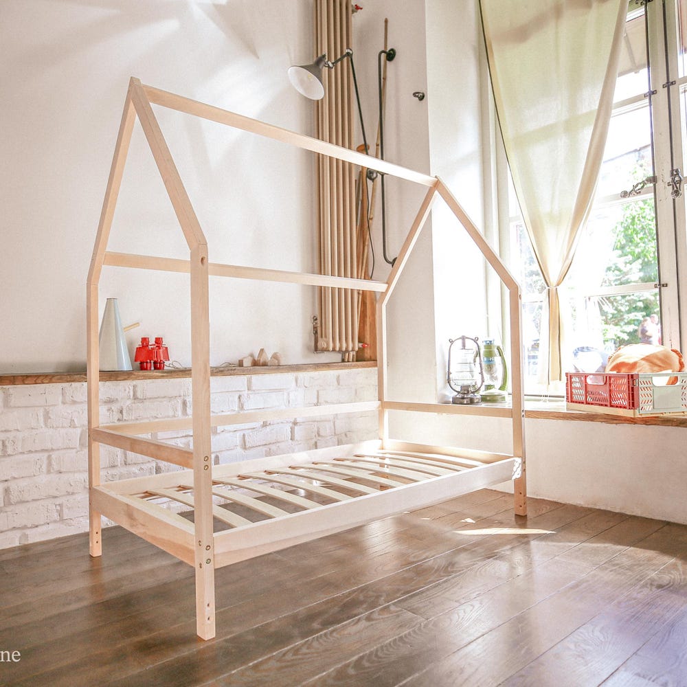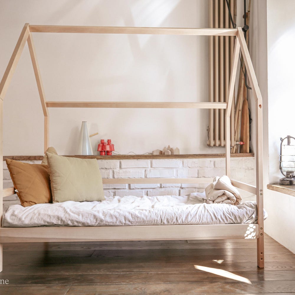 Alder Wood Bed Frame / Canopy Bed Frame / Bed for Toddlers / Kids Frame bad with slats/ Bed with legs