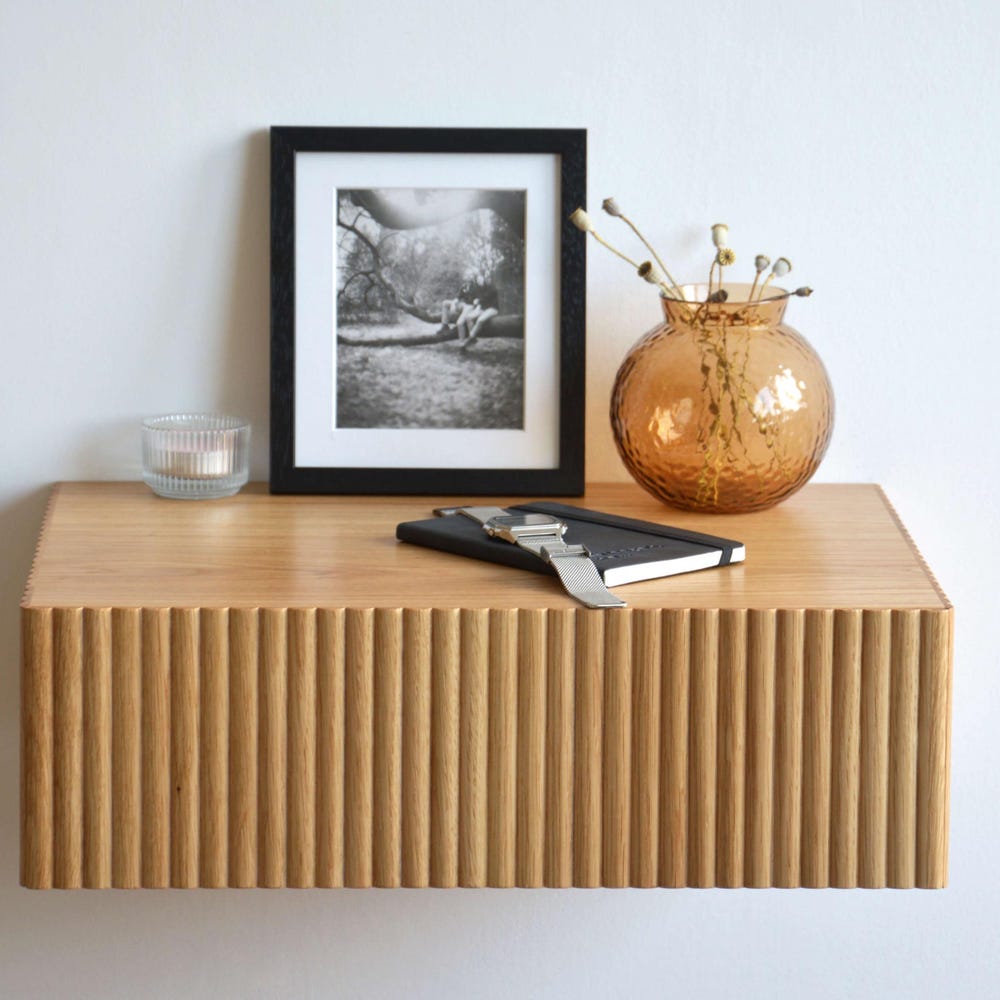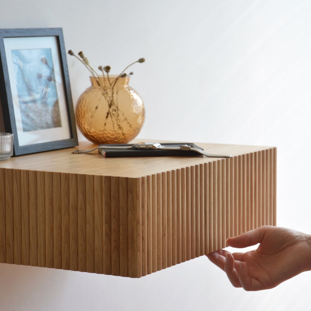 All-around fluted elegance at your bedside – a piece of furniture that you’ll be grateful to touch every day. A design object that will make your bedroom Pinterest-worthy. A floating nightstand for those who appreciate the beauty of solid wood and finely crafted furniture details.