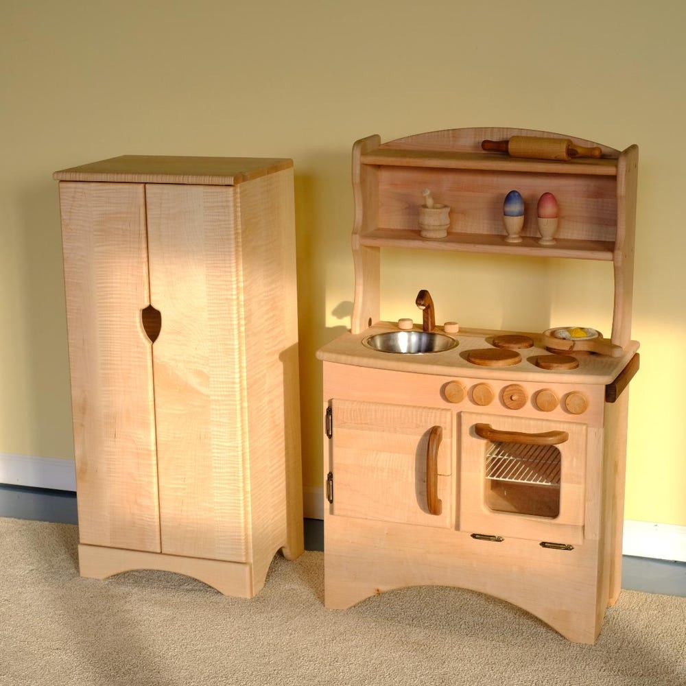 Features soft close hinges, decorative cutouts in the back allow for better door closure while letting in a little light. This is the same size/depth as our child’s Simple Fridge with a little twist. Comes fully assembled and ready to use!