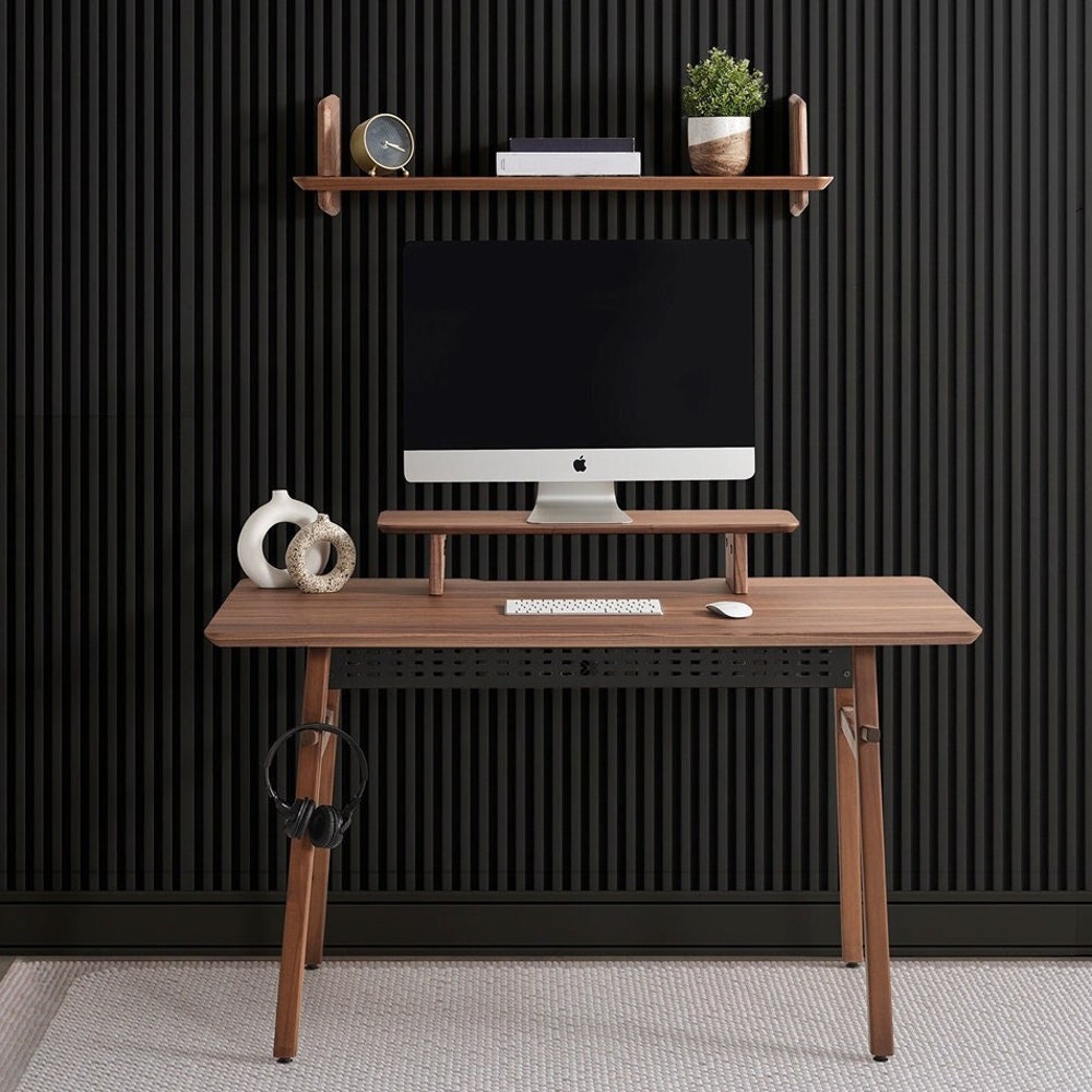 American Walnut Wooden Desk, Minimalist Computer Desk, Office Desk with Cable Organizer & Headphone Holder, Personalized Gift