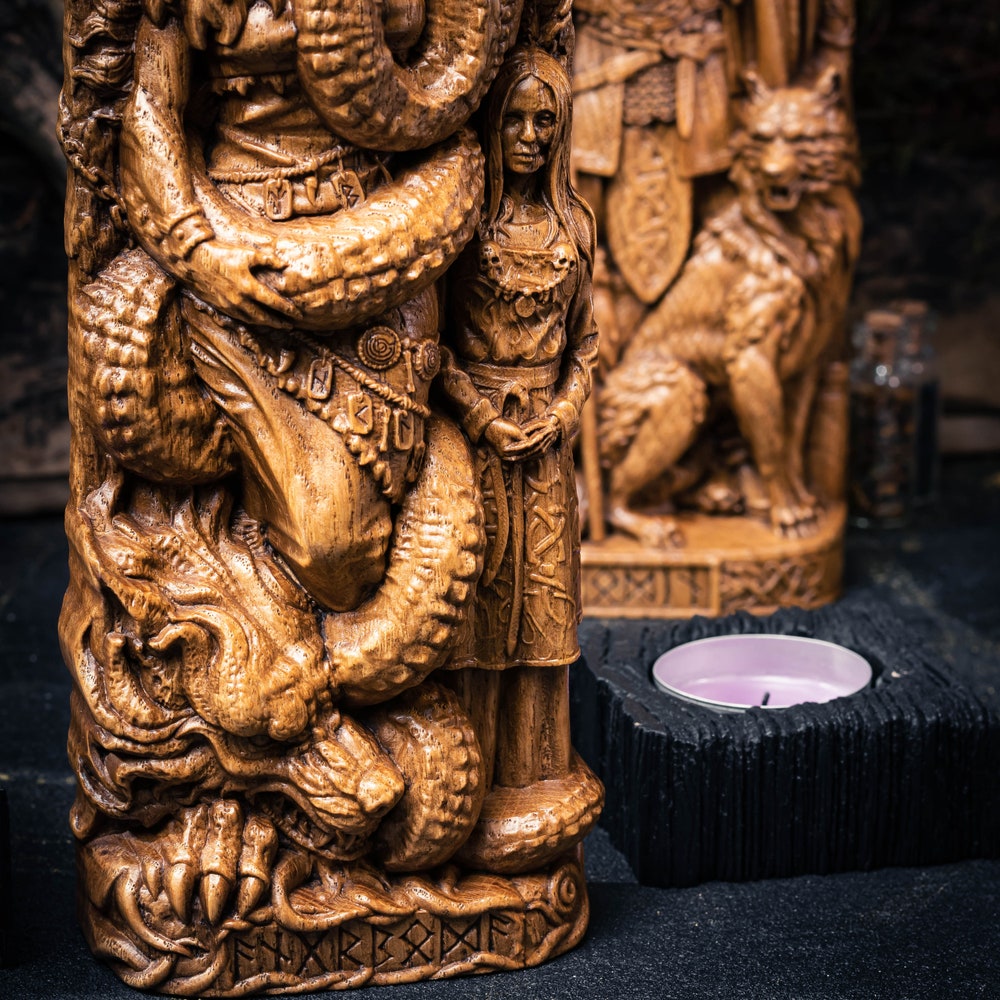 Be the first to review “Angrboda Norse goddess wooden statue from oak”
