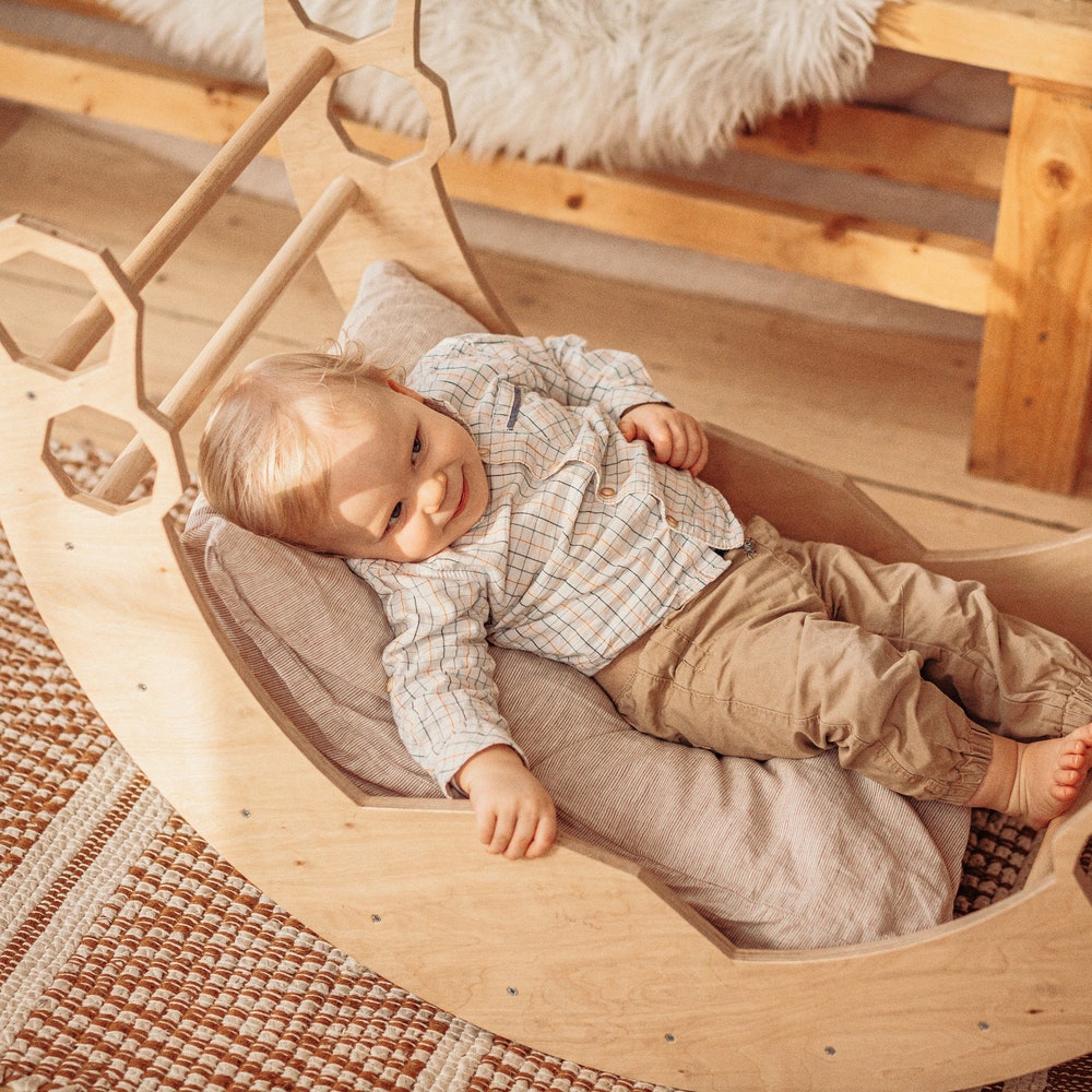 The Listing consists in color NATURAL WOOD: ONE Climbing Arch + ONE Foldable Triangle + ONE Climbing Ramp – ladder/slide or climbing rocks/slide+ Personalisation on the Arch (optional) DIMENSIONS: ✴️ Set S: Small Arch – 17.7 in * 27.55 in * 14.56 in / 45 cm * 70 cm * 37 cmSmall Triangle – 19 […]