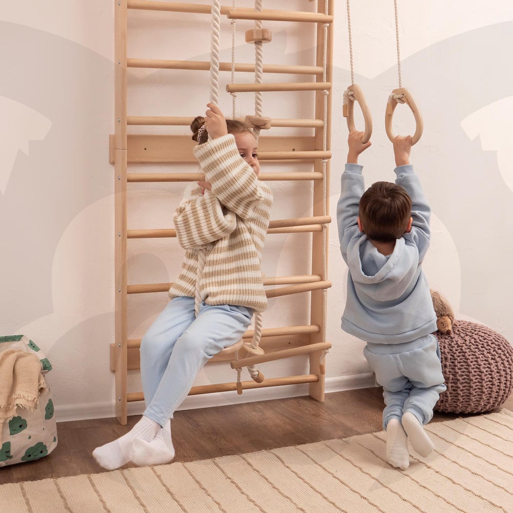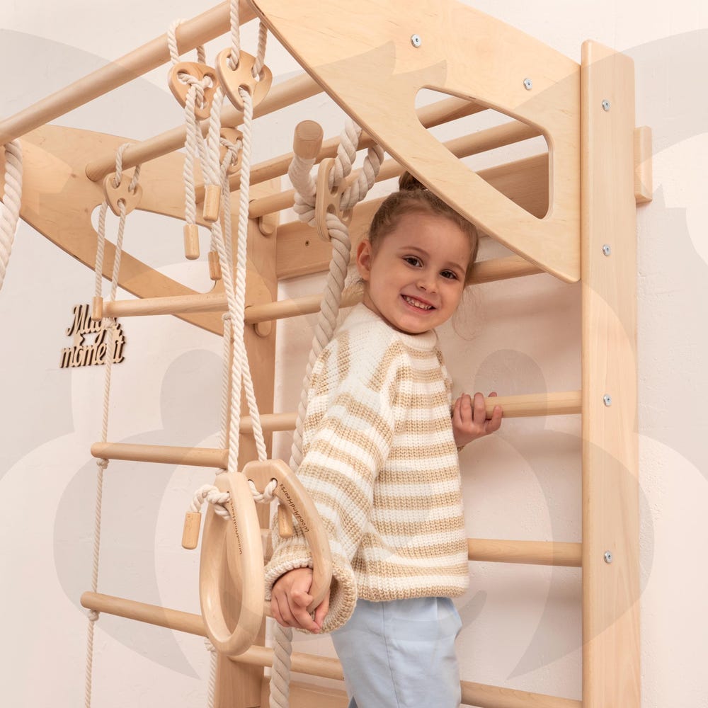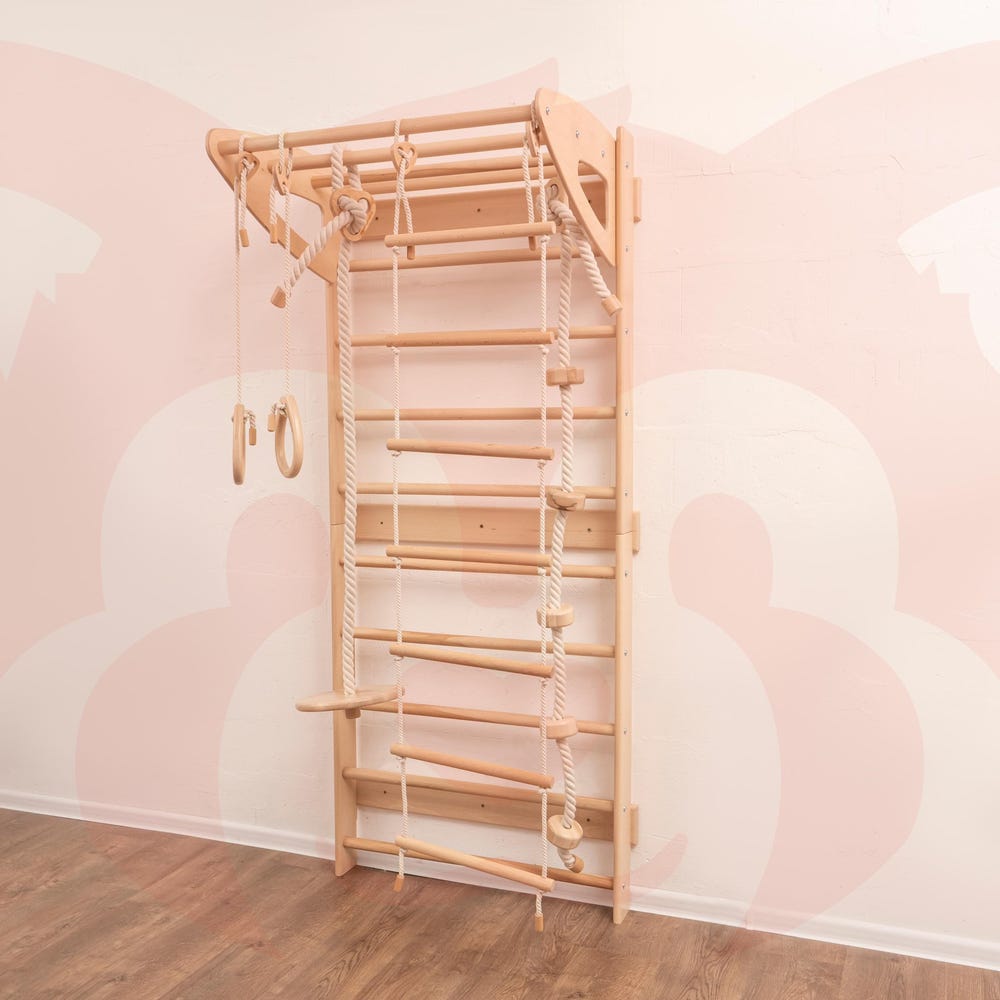 This Listing Consists of 5 Climbing items: ⚡️ Two-part Swedish Ladder in Natural Wood Color⚡️ Pair of Gymnastic Rings⚡️ Single Rope Swing with Round Seat⚡️ Climbing Rope with Wooden Spheres⚡️ Rope Ladder ● The Swedish Ladder can only be attached to a brick or concrete wall, or to wooden or metal profiles. ● Please indicate […]