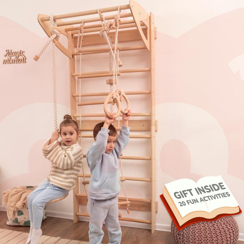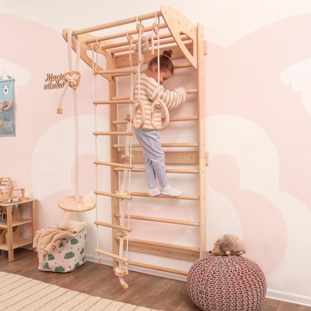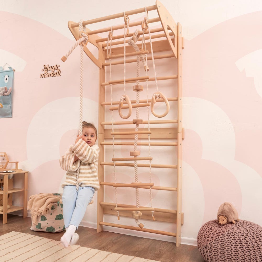Baby Mobile Swedish Ladder with Rope Accessories: Indoor Swing, Monkey Bars, Toddler Climbing Rope&Ladder, Montessori Toddler Climbing gym