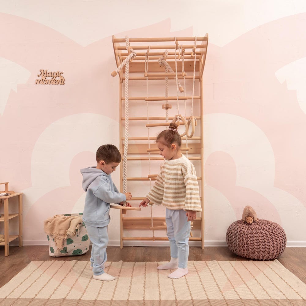 The Woodandhearts two-part Swedish ladder with accessories is the perfect place for your kid to hang out and play. The distance between the bars is specially calculated to make it comfortable for your child to balance on the ladder, while the various accessories make it really exciting. The cool design and eye catching colors will be loved by every little one. This set of the Ladder and accessories is made with attention to details, according to the Montessori technology, its main idea is to develop the baby’s fitness and desire to spend time actively. Let’s cheer up!