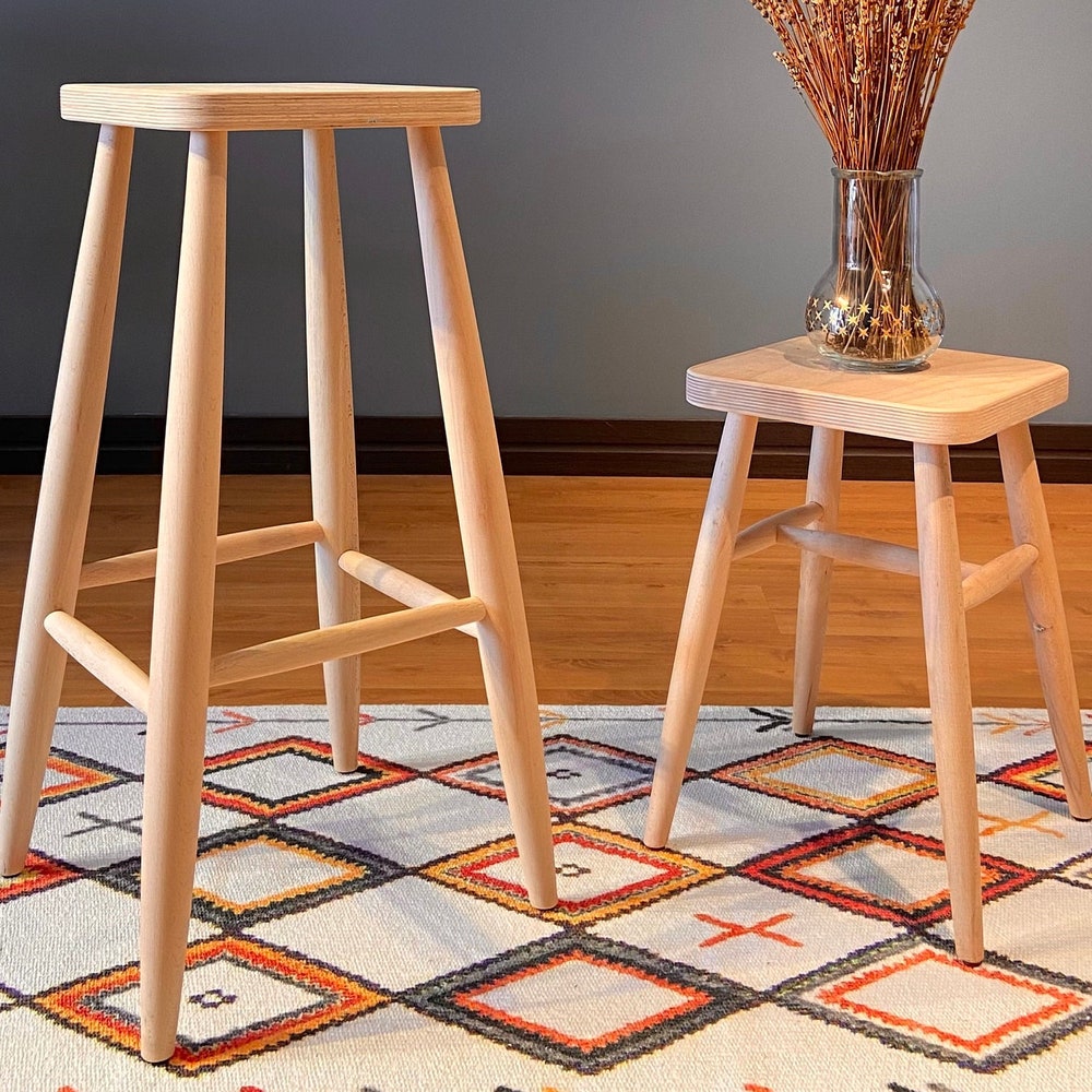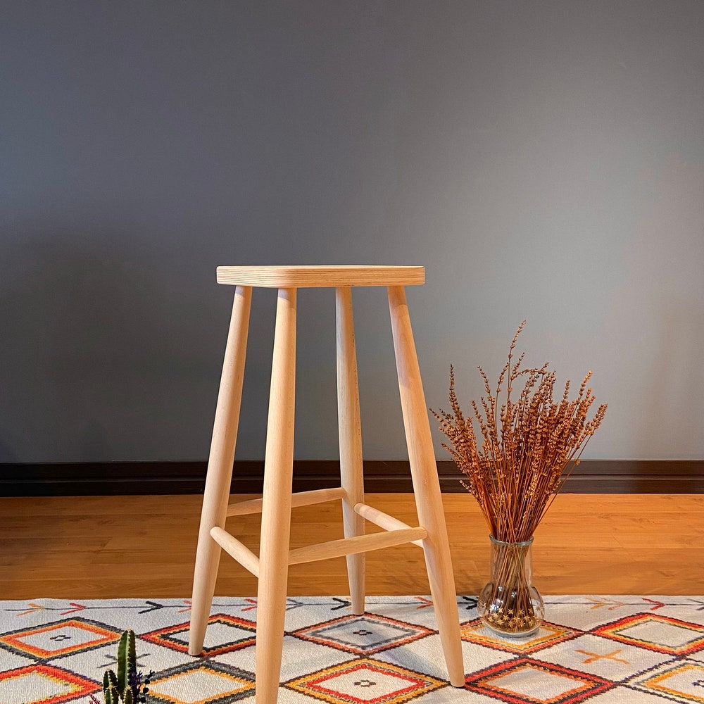 A perfect counter stool for those who like minimalism and rustic style. This backless bar stool is completely handmade and made of solid wood. You can customize the color, the height and the seat as you wish, just let us know. The stool is unpainted and suitable for unpainted use but as a hobby, you can easily paint it the color you want and color your home. Suitable for counter, bar, kitchen island or industrial use. For any questions or special orders, please send us a message; We will be happy to reply as soon as possible.