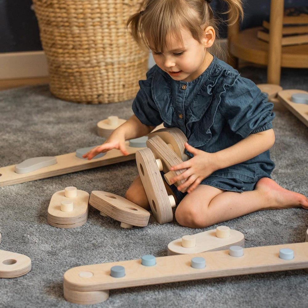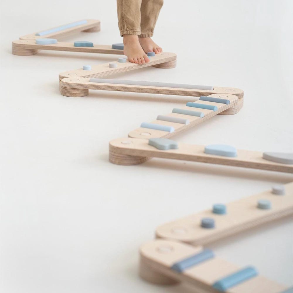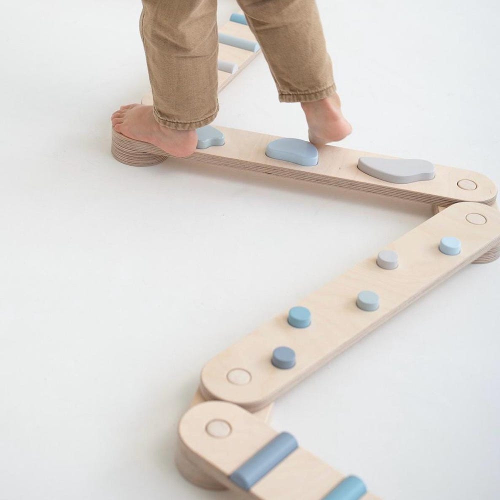 HappyMoon team offers the first double-sided balance beam in the world. It is an open-ended unique wooden toy that develops fine and gross motor skills, a sense of balance and agility, strengthens muscles, and is a good leg trainer, which helps prevent flat feet.