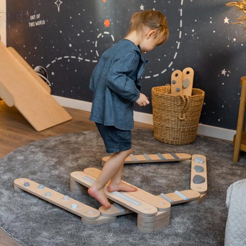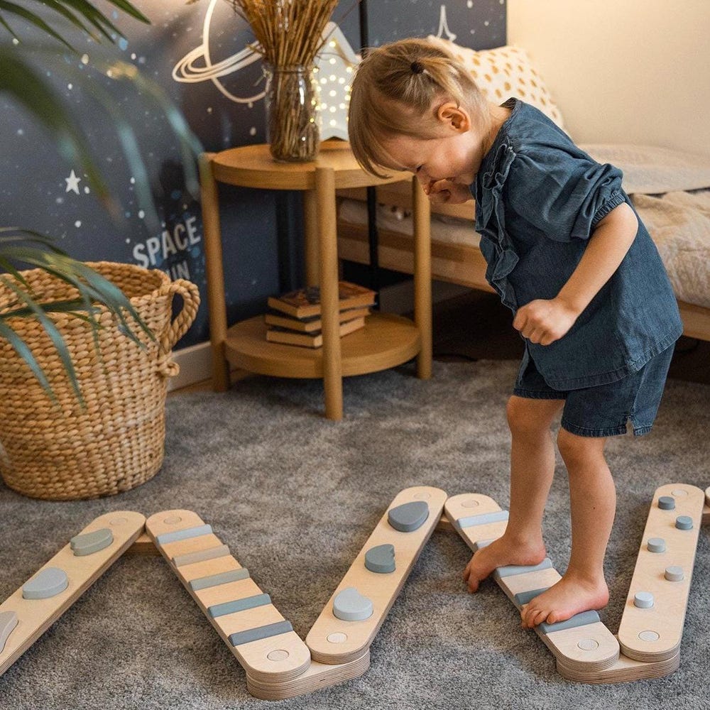 Balance beam set from 4, 6 or 8 beams, Montessori toy, gift for kids, wooden balance path, balance toy for kid, balance board, toddler gym