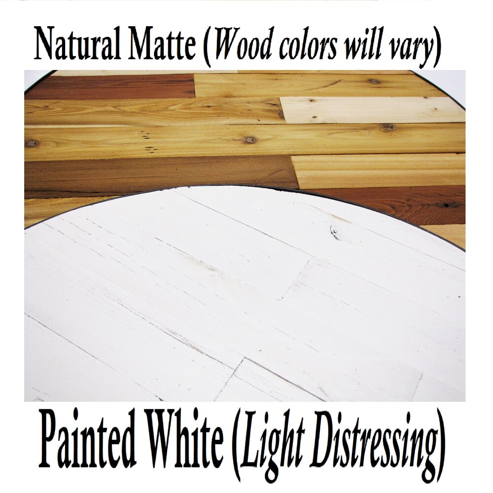 The Natural matte finish uses the same reclaimed barn wood as the mixed barnwood finish, but we run it through the saws and sanders to give it a more even finish. It will have the same knots, nail holes and even saw marks as the mixed barnwood, as well as variation in color depending on the age and grain of the wood. The natural finish is also given a light coat of matte polyurethane for protection and to bring out the amazing natural colors hidden within the reclaimed wood.
