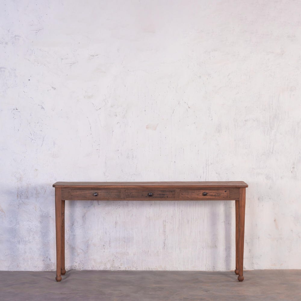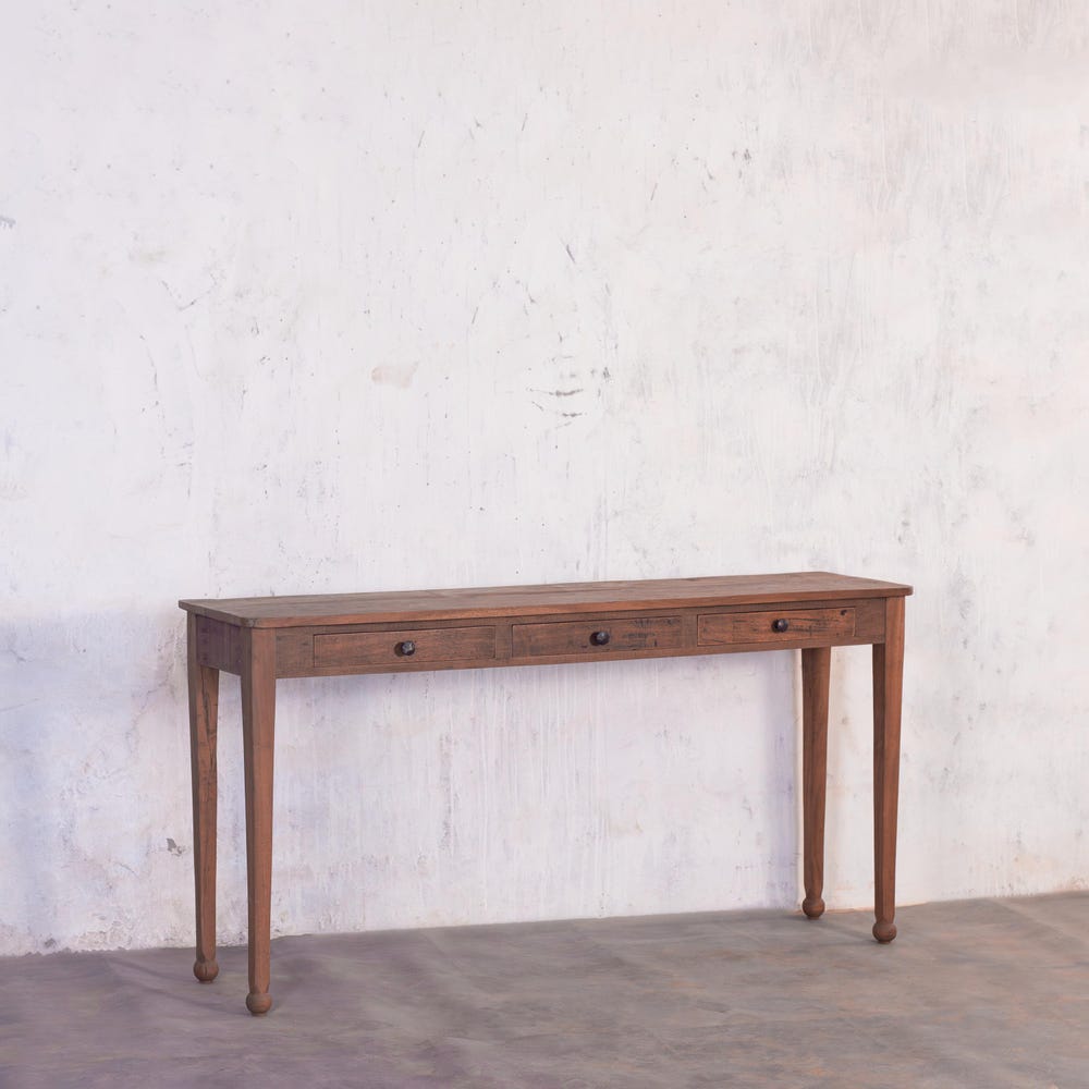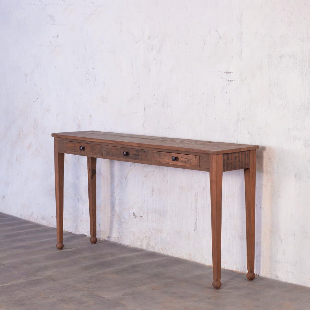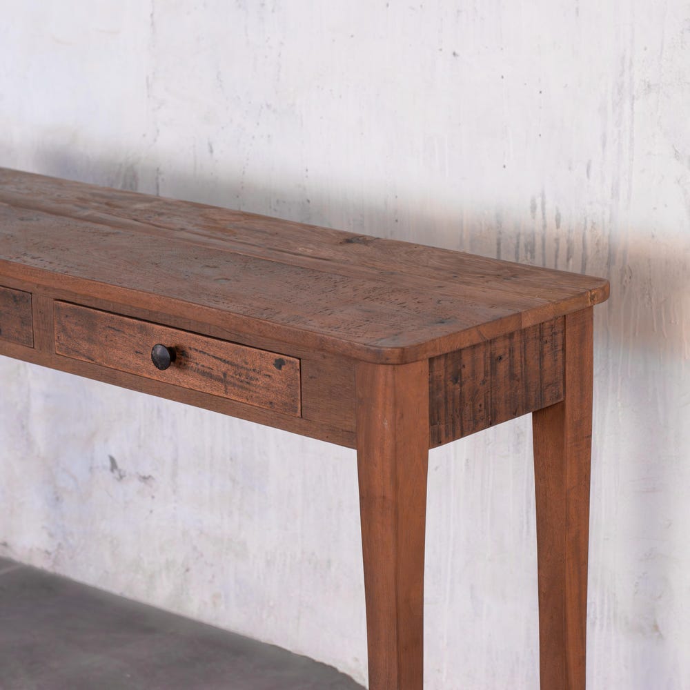 Add a touch of rustic elegance and practical storage to your home with the Barnwood Breeze Console Table with Drawers. Expertly crafted from reclaimed wood, this console combines vintage farmhouse charm with a modern, slim profile, making it the perfect addition to entryways, living rooms, or hallways.