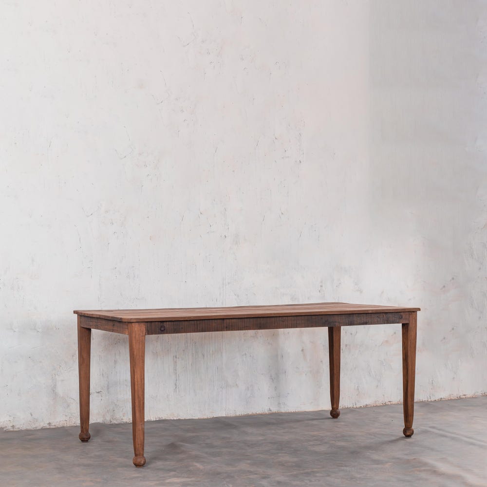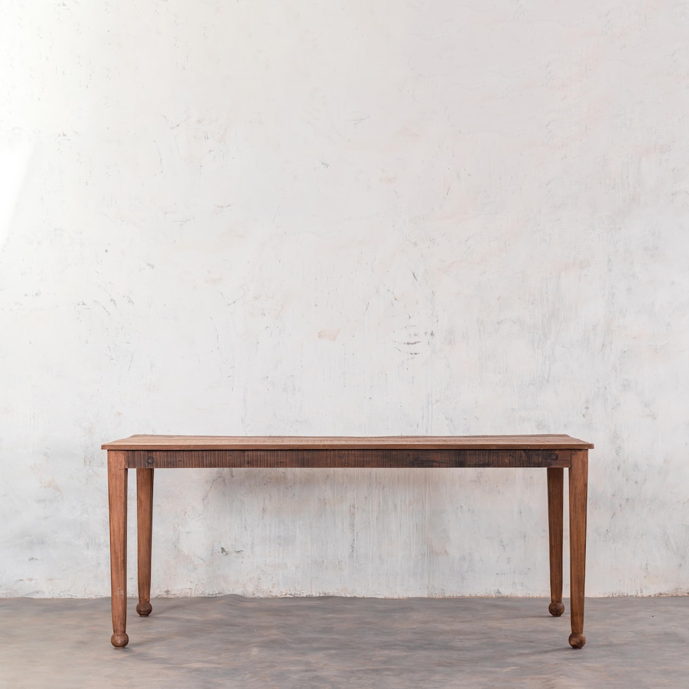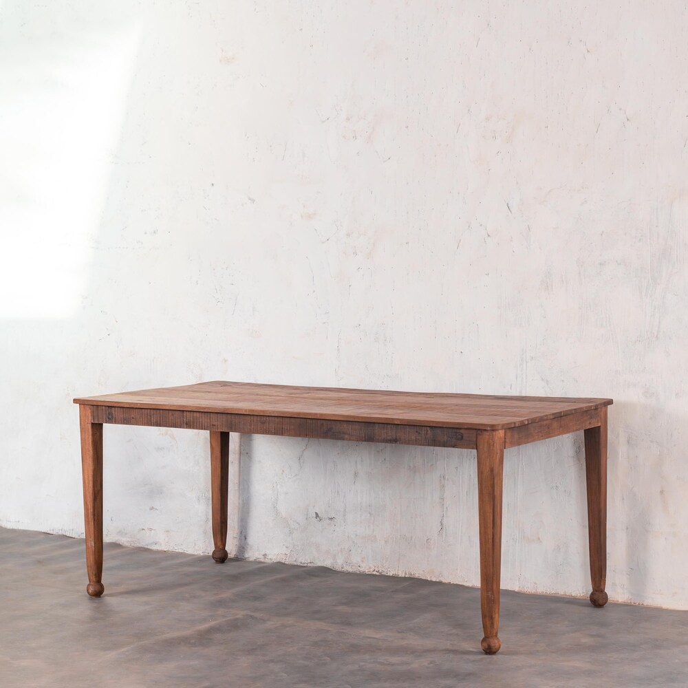 Crafted from carefully selected reclaimed wood, the Barnwood Breeze Dining Table is an eco-conscious choice with a story in every grain. Its elegantly carved legs add a touch of timeless craftsmanship, while the slim design offers a clean, contemporary feel that complements any room decor.