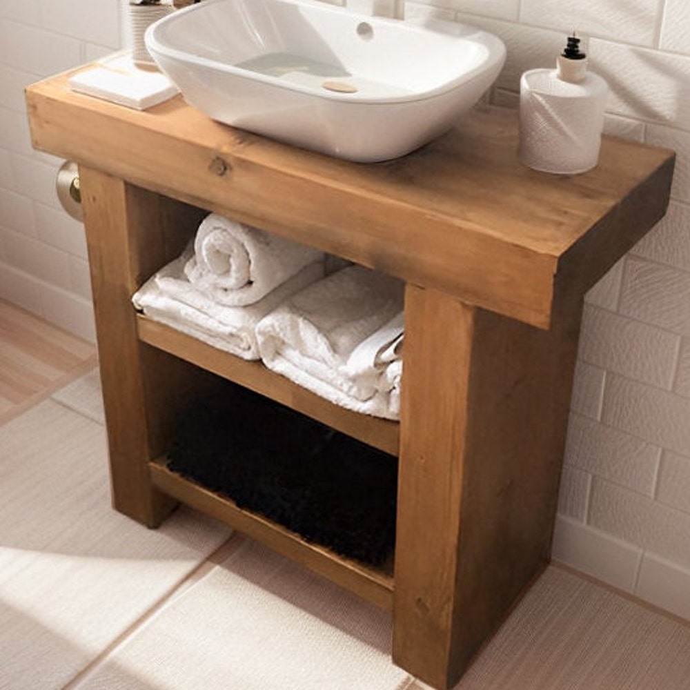 Bathroom Rustic Vanity, Reclaimed Wood Solid Bathroom Vanity, Live Edge Farmhouse Rustic Wood Decor, Counter Top Wood Table