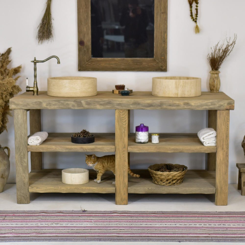 Rustic bathroom vanity reclaimed wood live edge vanities sink farmhouse wooden decor gift for her