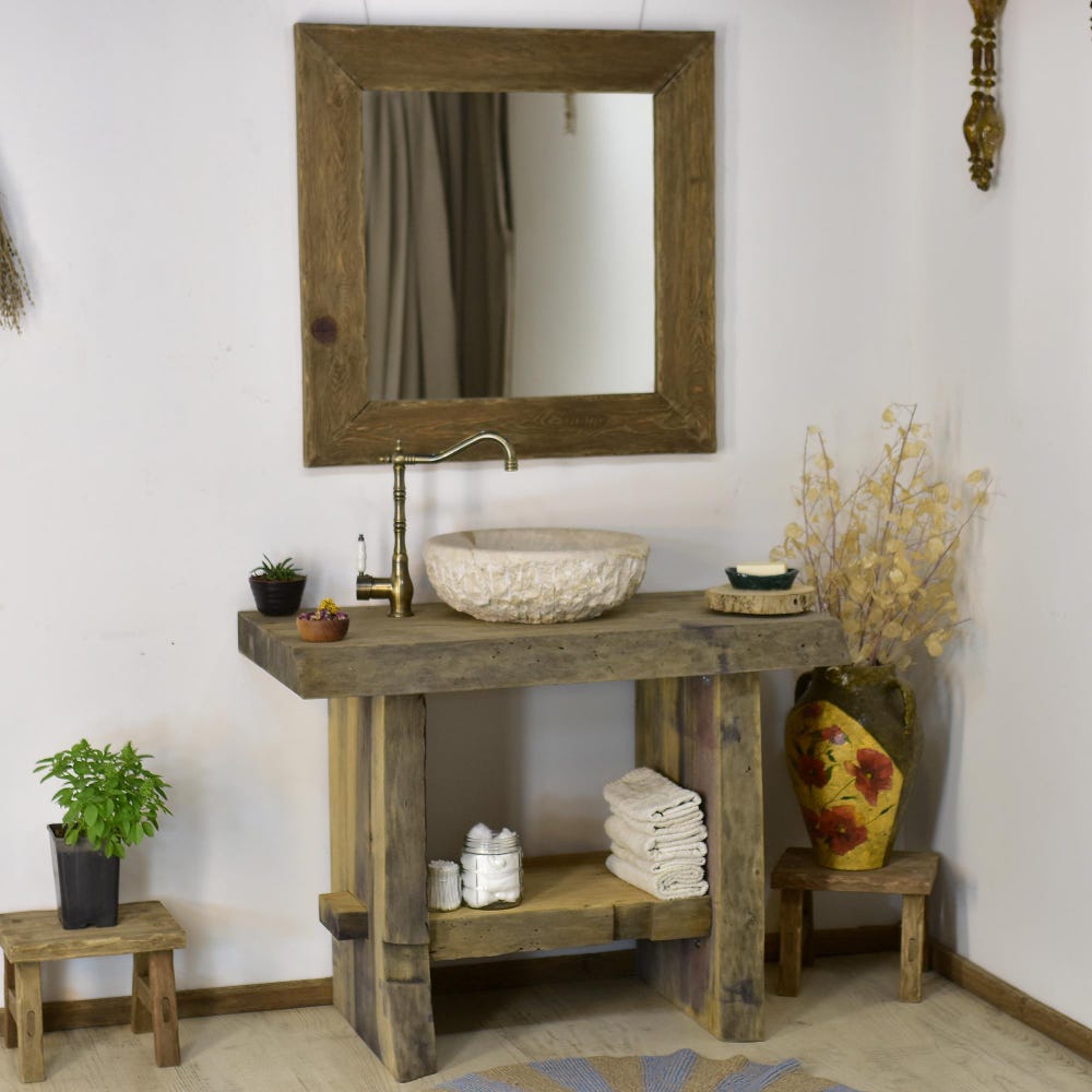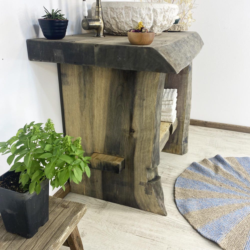 Bathroom Sink Vanity Table Medieval Walnut Wood Vanity Handmade Reclaimed Vintage Wood Live Edge Vanities Sink Farmhouse Wooden Gift for Her