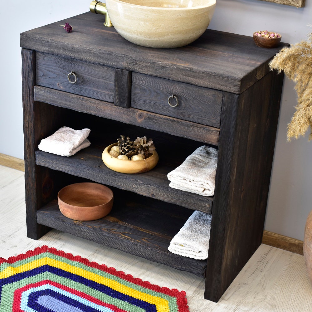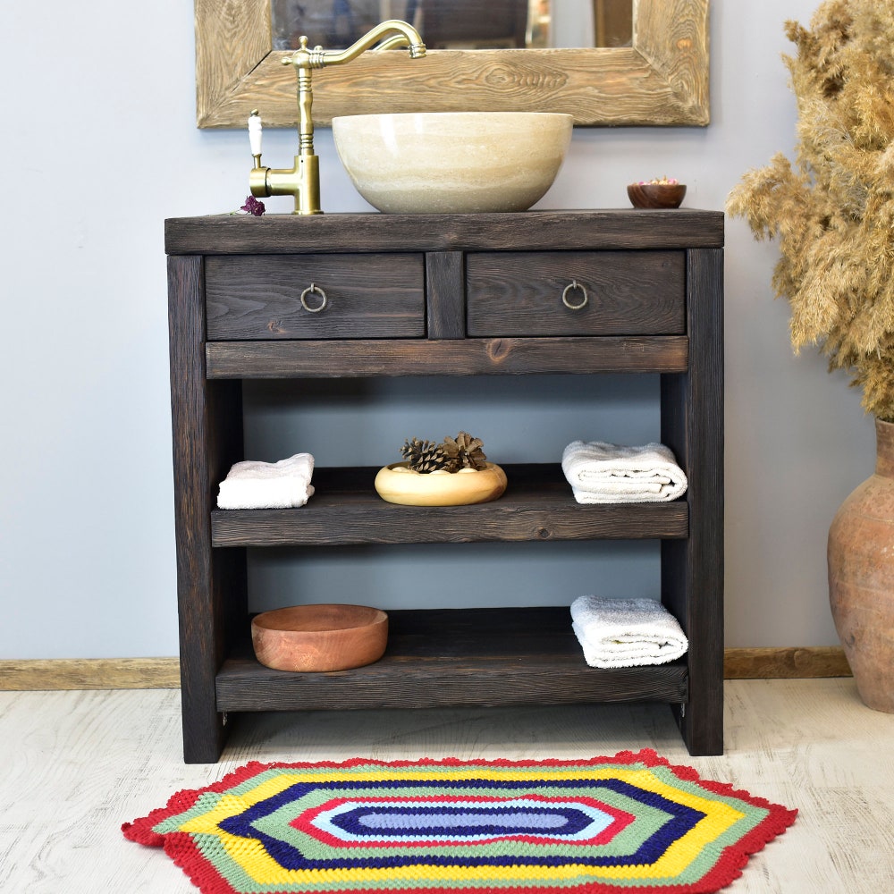 Bathroom Sink Vanity Vanity Table Dresser Handmade Reclaimed Wood Live Edge Vanities Sink Farmhouse Wooden Decor Bathroom Sink with Drawers