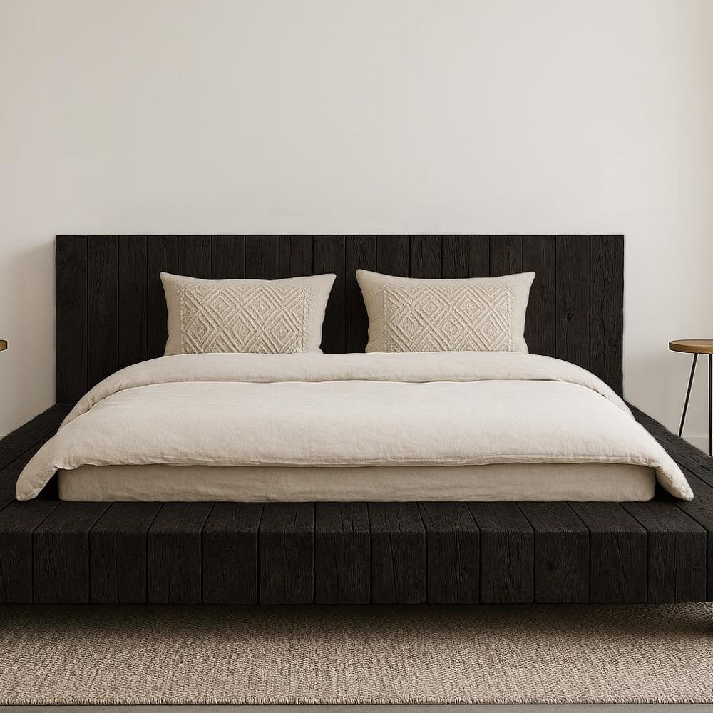 Bed Frame Queen for Room Decor Aesthetic – Personalized King Bed Frame for Couples Gift – Lone Ebony Flute Floor Bed – Adjustable Bed Frame