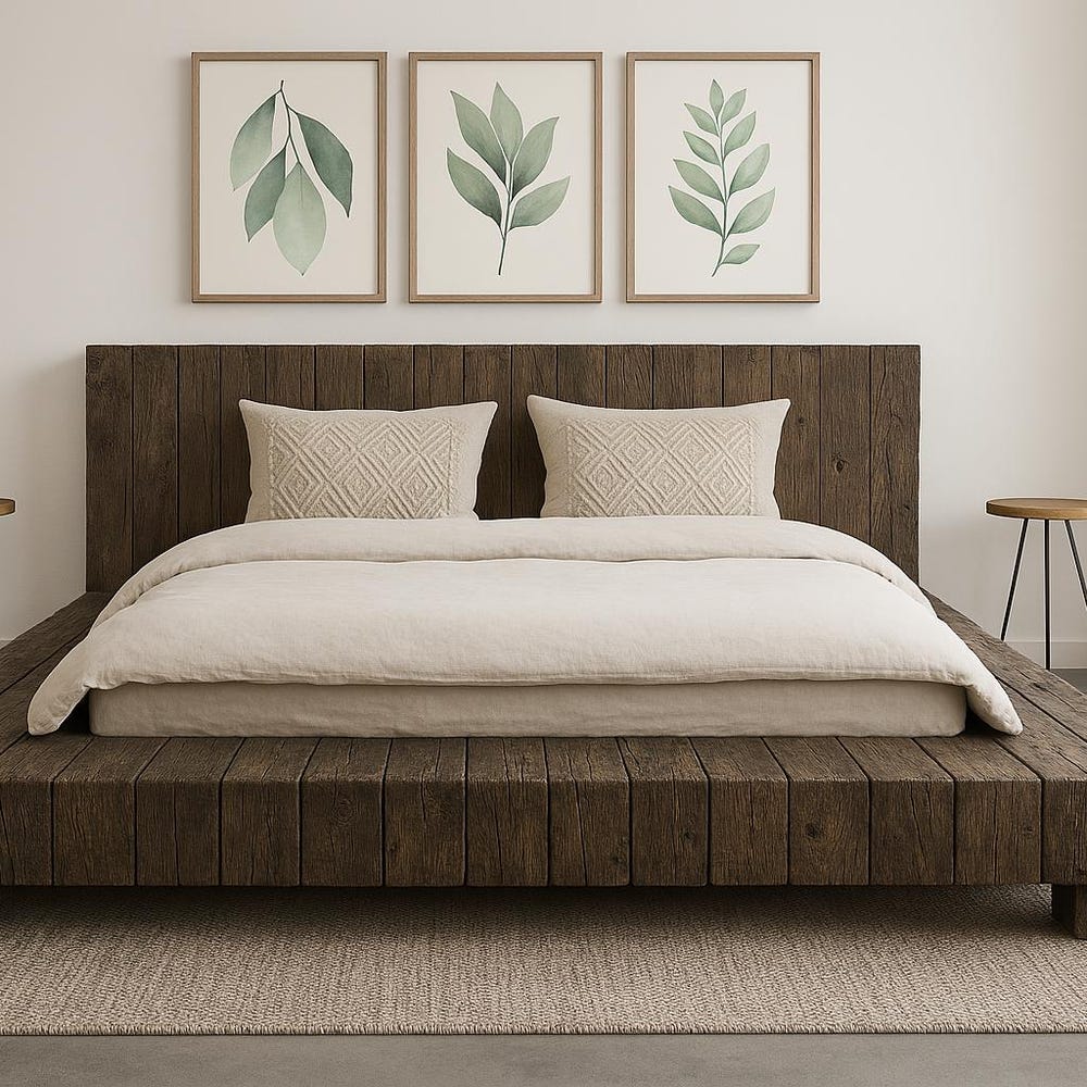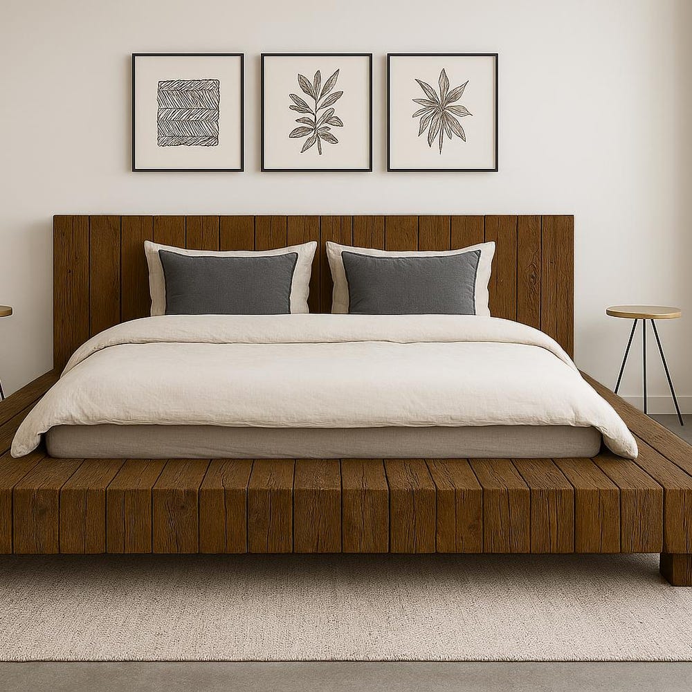 Bed Frame King Gift for Couple – Walnut Patchwork Floor Bed for Bedroom Decor – Platform Bed Frame Handmade Furniture – Queen Bed Frame