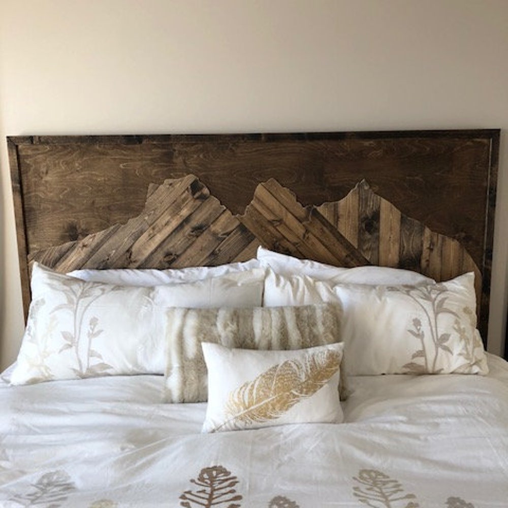 ✔ Unique Mountain Range Headboard: Beautiful Three Sisters Mountain range design.