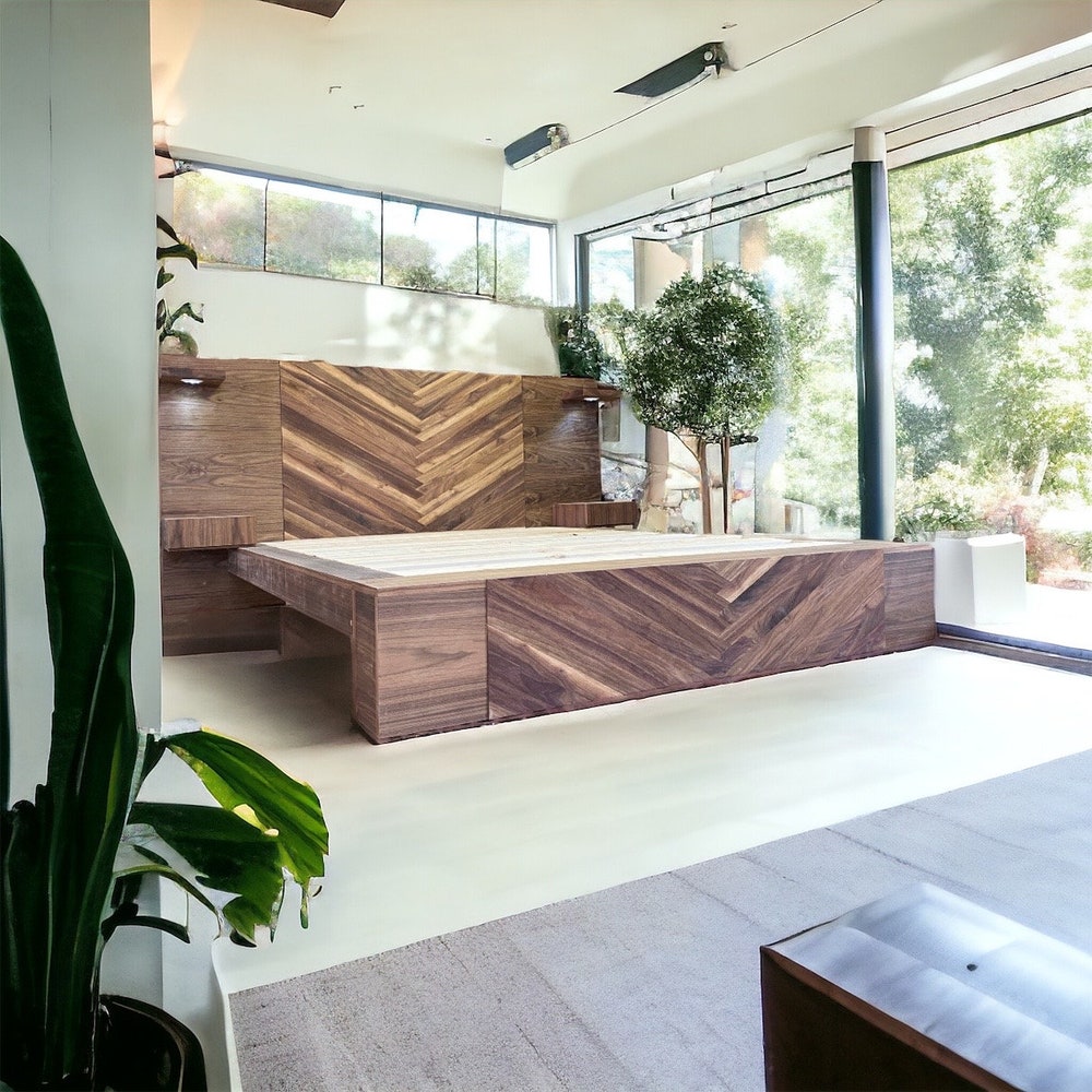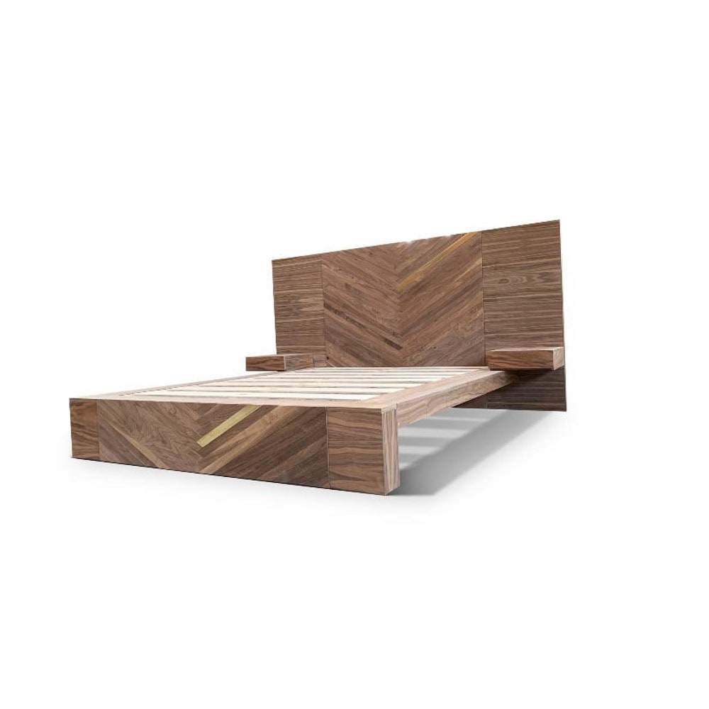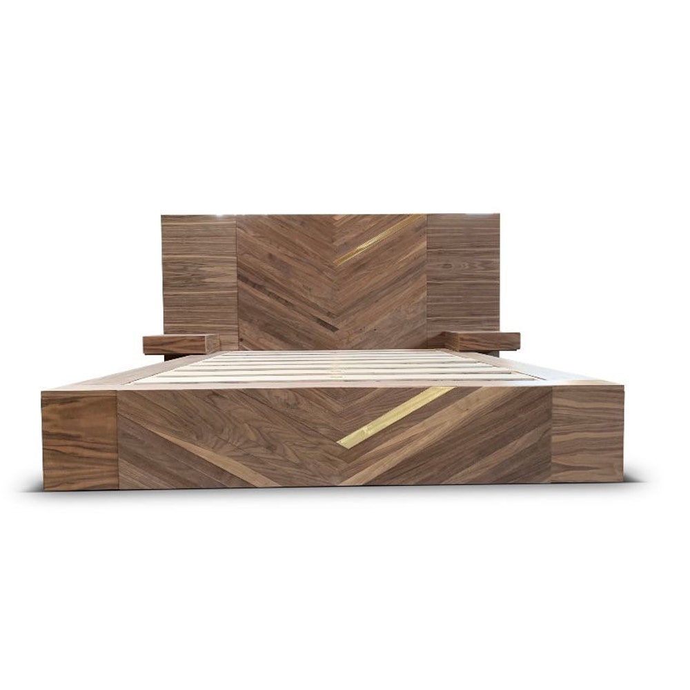 Bed Frame King Gift for Couple – Walnut Patchwork Floor Bed for Bedroom Decor – Platform Bed Frame Handmade Furniture – Queen Bed Frame